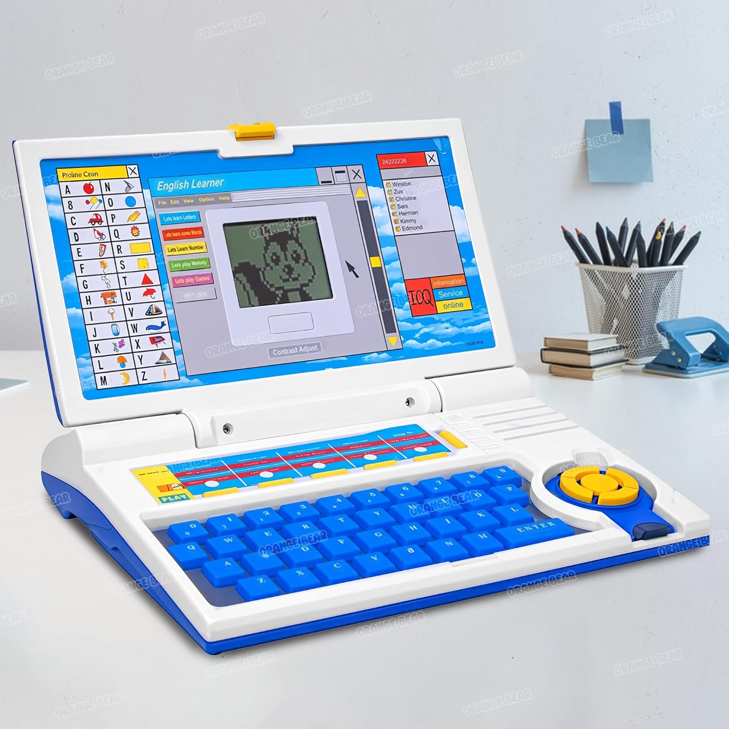 Orange Bear Kids Educational Laptop Toy with Mouse (1 Year Warranty) – 20 Learning Activities Games Music | ABC Numbers Alphabet Computer Toy for Boys & Girls | Learning Notebook for Kids (Blue)