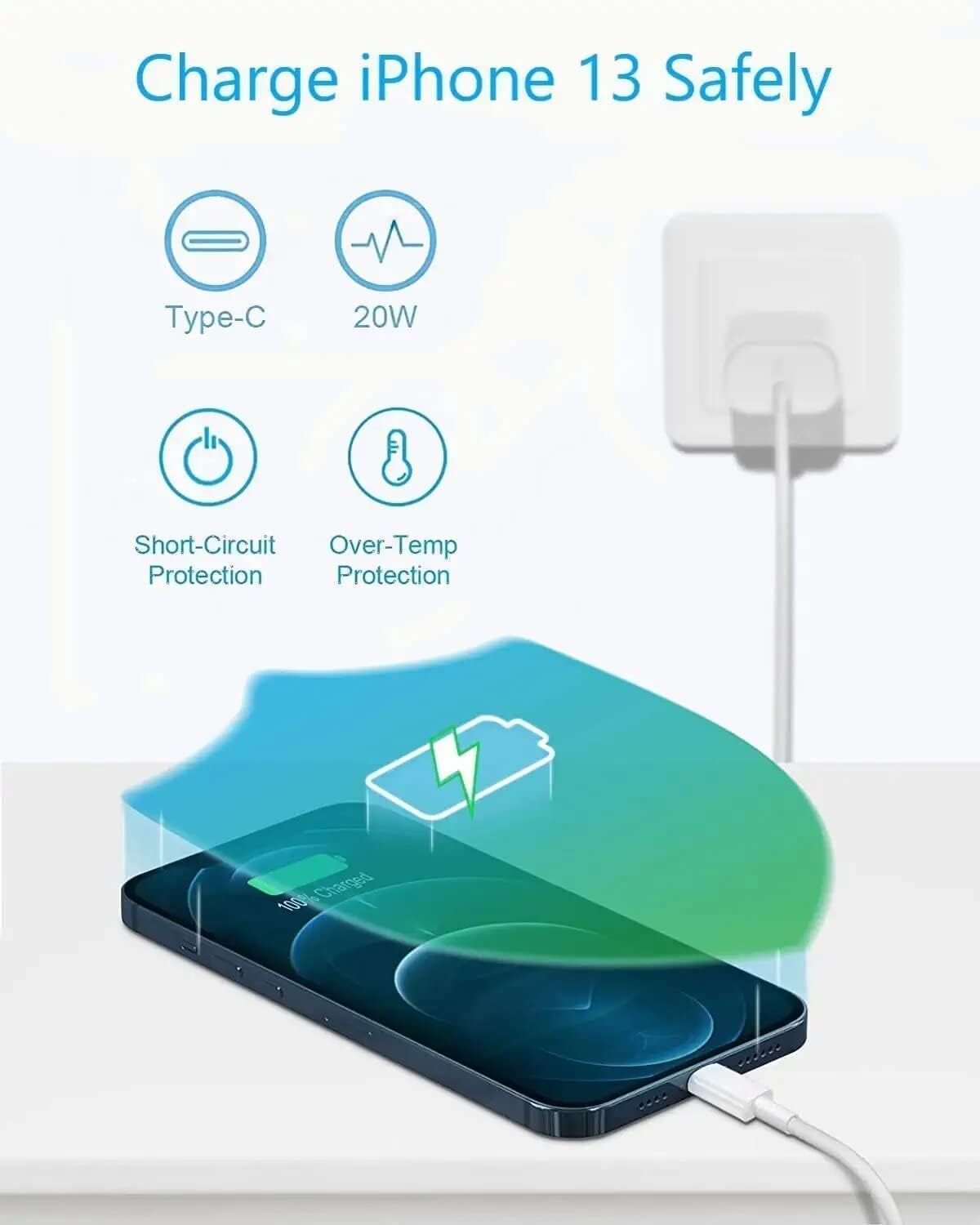Orignal 20-Watt Fast Charger Adapter and Cable Compatible with app.le i-pho.ne 14 Pro, 14 Pro, 13, 13 Pro, 13 Pro Max, 12, 12 Pro Max, 11, 11 Pro Max, X, XR, XS Max (All iPads)