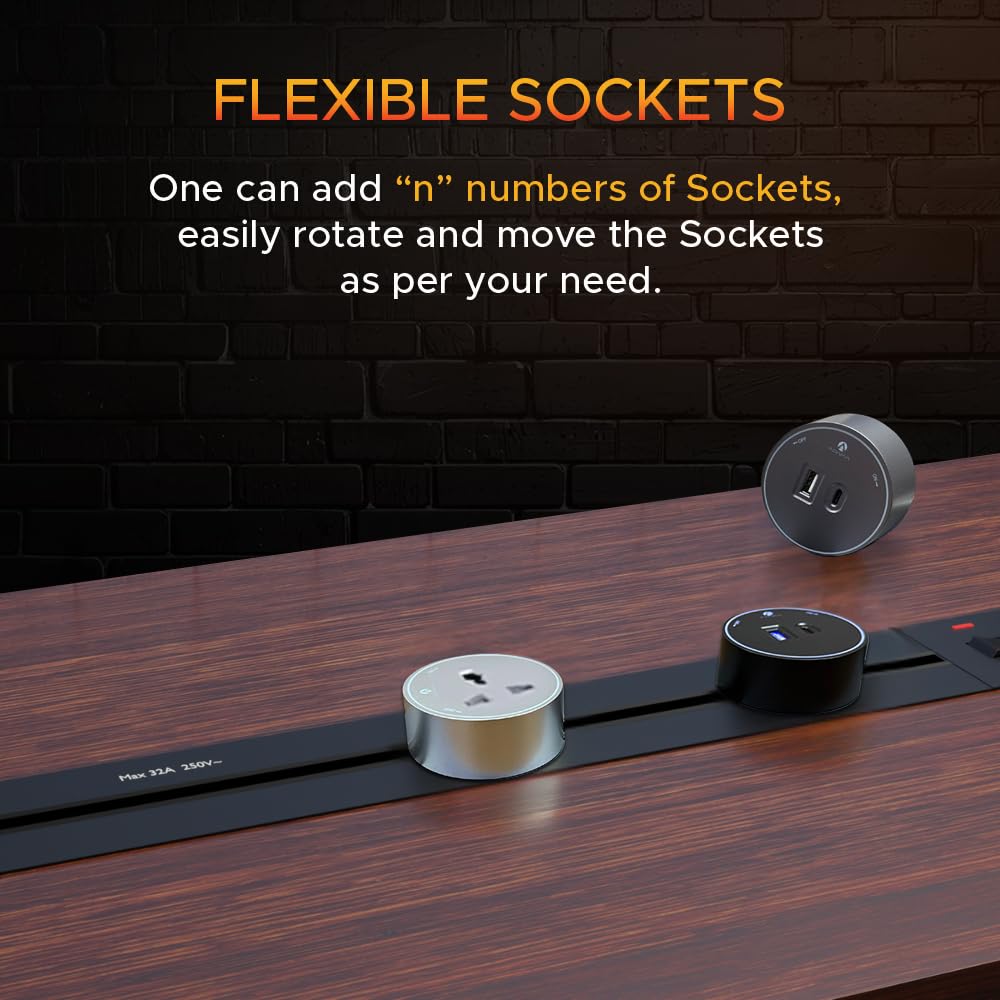 Power Track Socket | Smart Home Gadgets | Electrical Wall Outlet for Kitchen Office | with Blue Led Ring | Rail Outlet with Round and Aluminum (3-pin Round (Black))