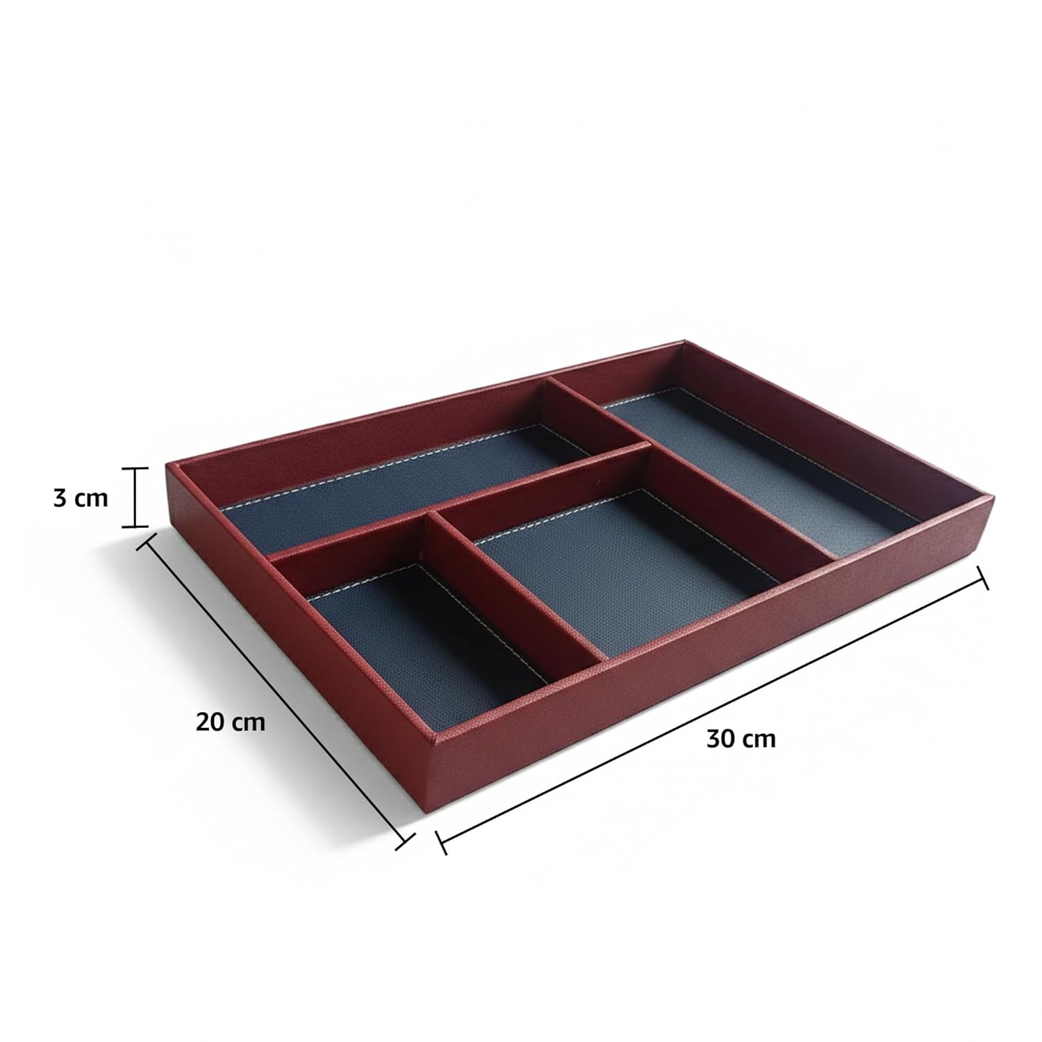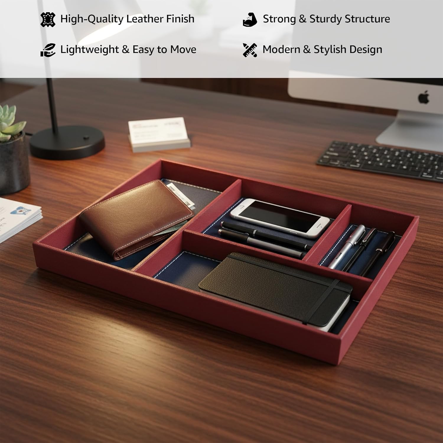 Premium Faux Leather and MDF Valet Tray | Luxury EDC Desk Organizer & Bedside Nightstand Caddy for Smartphone, Watch, Keys and Accessories (Classic Maroon)