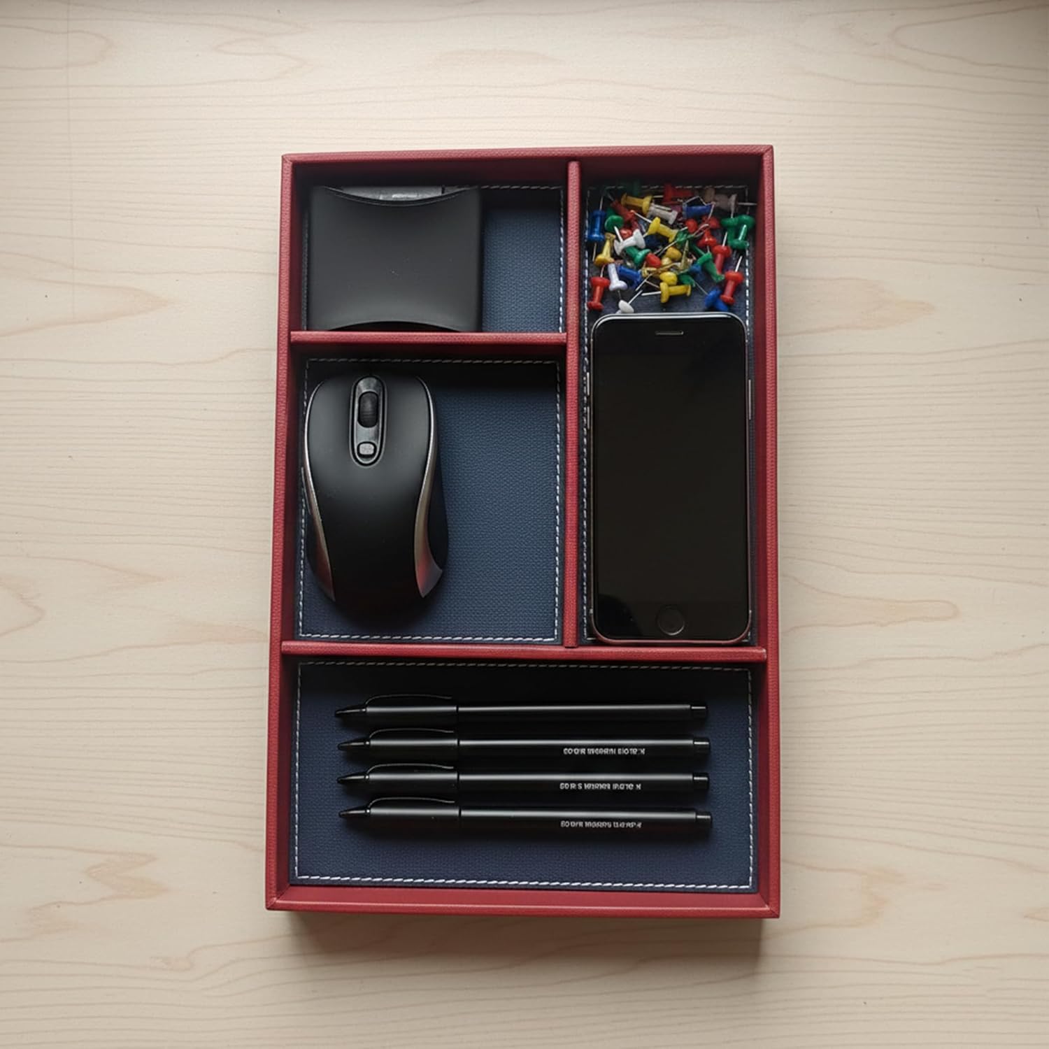 Divided Efficiency: Features three dedicated compartments—a large section for your smartphone and pen, and two smaller slots perfect for wireless earbuds, wallets, or charging bricks.