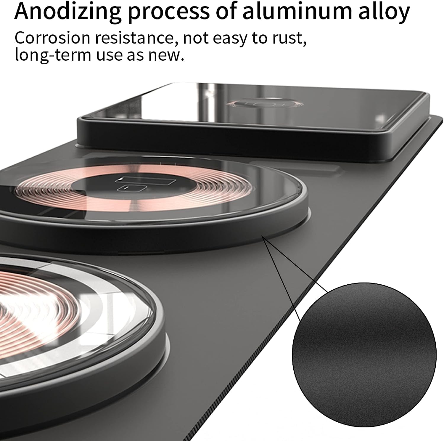 Portable – Compact design for easy travel and less wires to carry. Charge two compatible iPhones or Android at the same time. Also, compatible Qi compatible headphones and iWatch