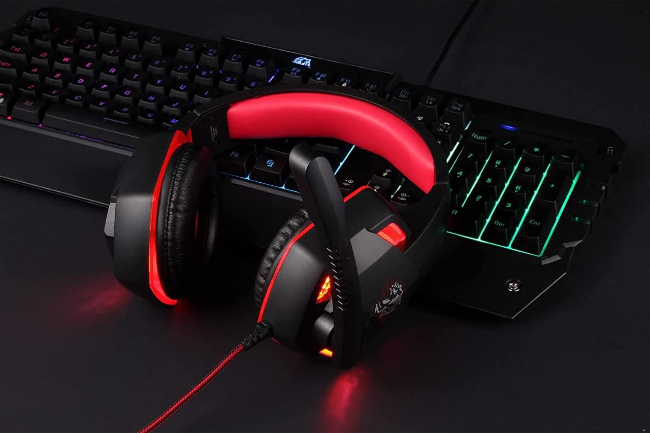 Professional Wired Gaming Headset with 40mm Driver for Surround Stereo Sound | Adjustable Headband with Fascinating LED Lights & Passive Noise Cancellation with Free Y Splitte