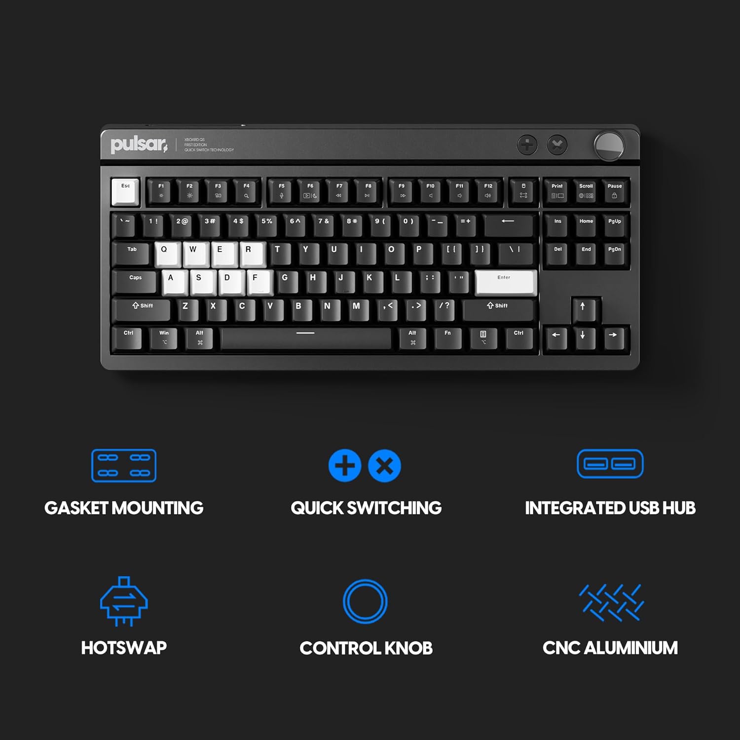 Pulsar XBOARD QS Mechanical Gaming Keyboard – QMK/VIA, Hot Swappable Linear Switch, TKL Layout Gasket Mount, Aluminum Frame, RGB LED Backlit, Knob, Dual PC Quick Switch for Mac/Windows (Black)