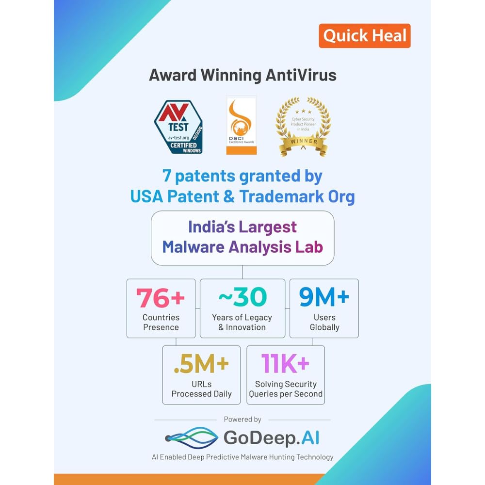 Quick Heal Total Security Antivirus for Laptop and PC | 1 User 1 Year Subscription | Powerful Antivirus & Malware Protection | | Email Delivery in 2 Hours, NO Physical Box Delivered |