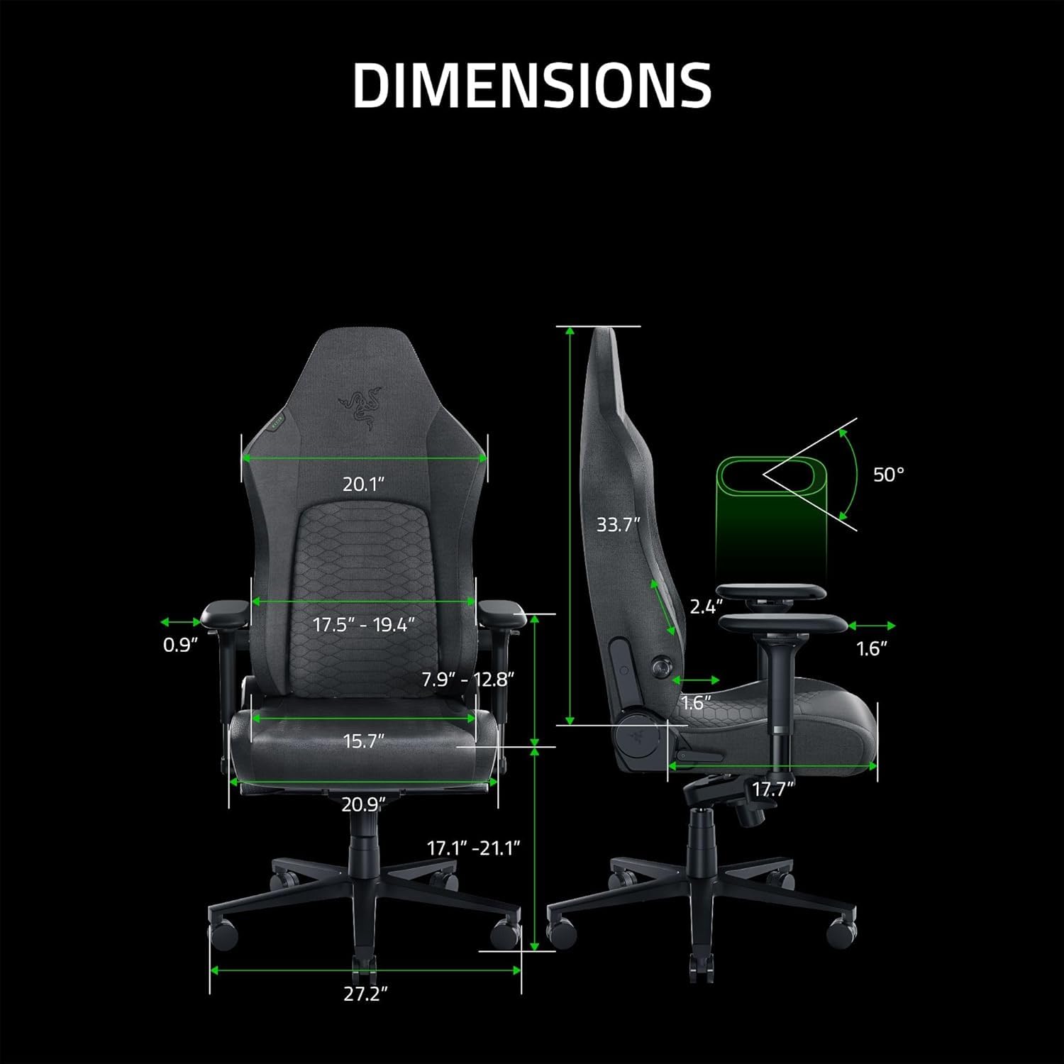 Razer Iskur V2 Gaming Chair: Adaptive Lumbar Support – Adjustable Lumbar Curve – High Density Foam Cushions – Reactive Seat Tilt &152-degree Recline – 4D Armrests – Fabric – Dark Grey