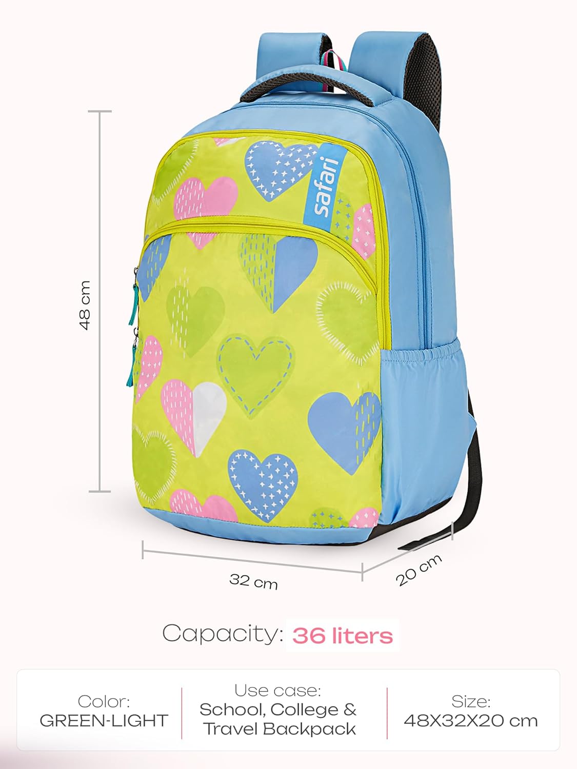 Safari Pixibeat School Bag For Girls, Capacity – 36L, 2 Compartments Backpack For kids