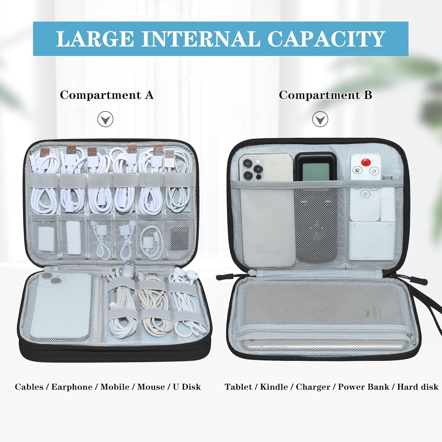 SaleOn 9×6 Inch 2 Layer Travel Organizer Pouch for Gadgets Cables Chargers Power Bank Cable Organiser Tech Bag Laptop Accessories Travel Pouch for Men