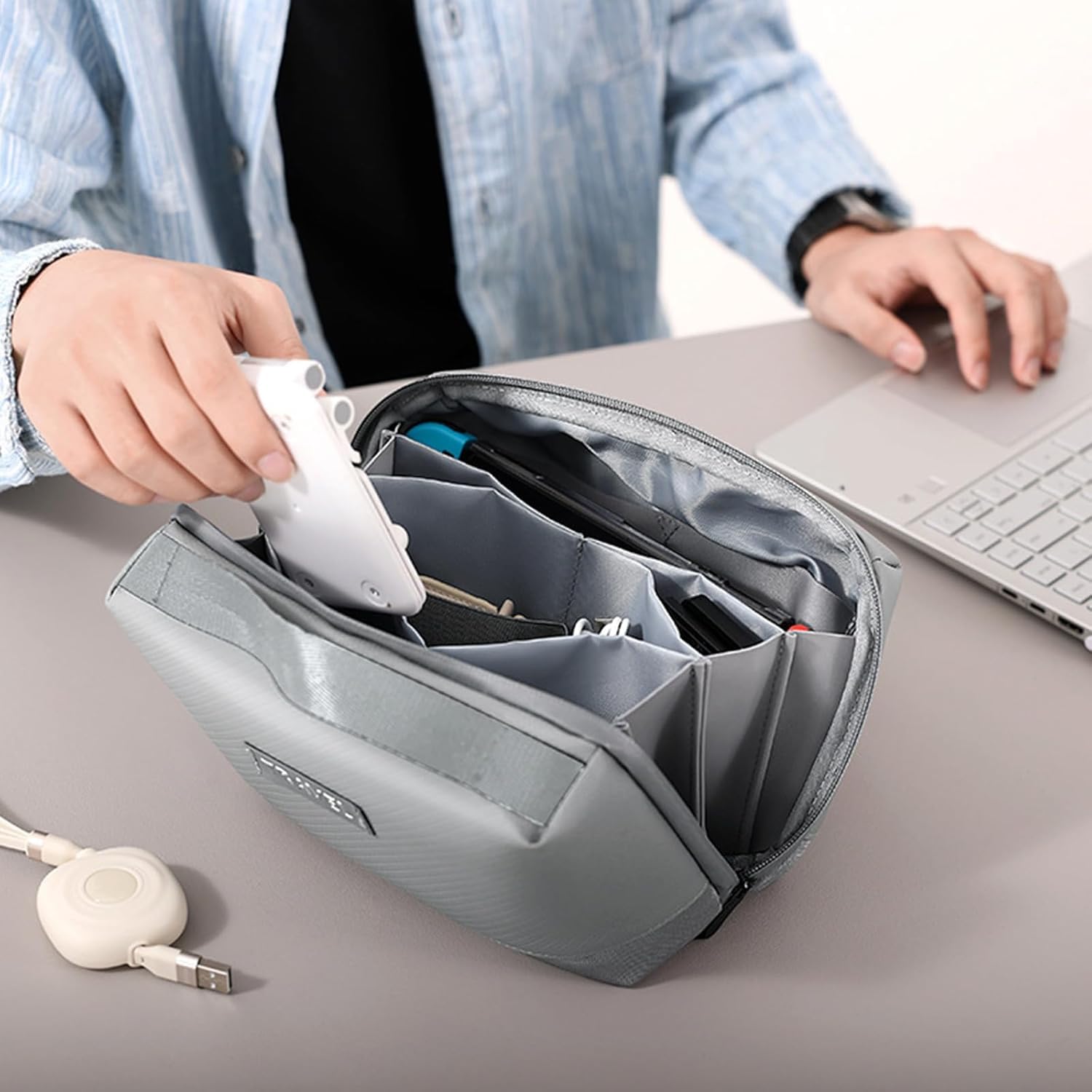 DURABLE CABLE BAG: The cable storage box is made of water-repellent and weatherproof poly urethane, durable and sturdy enough to protect your tech accessories from umps and friction, solid internal pockets to keep your item safe from slipping out. The dual YKK zippers zip easier and smoother.