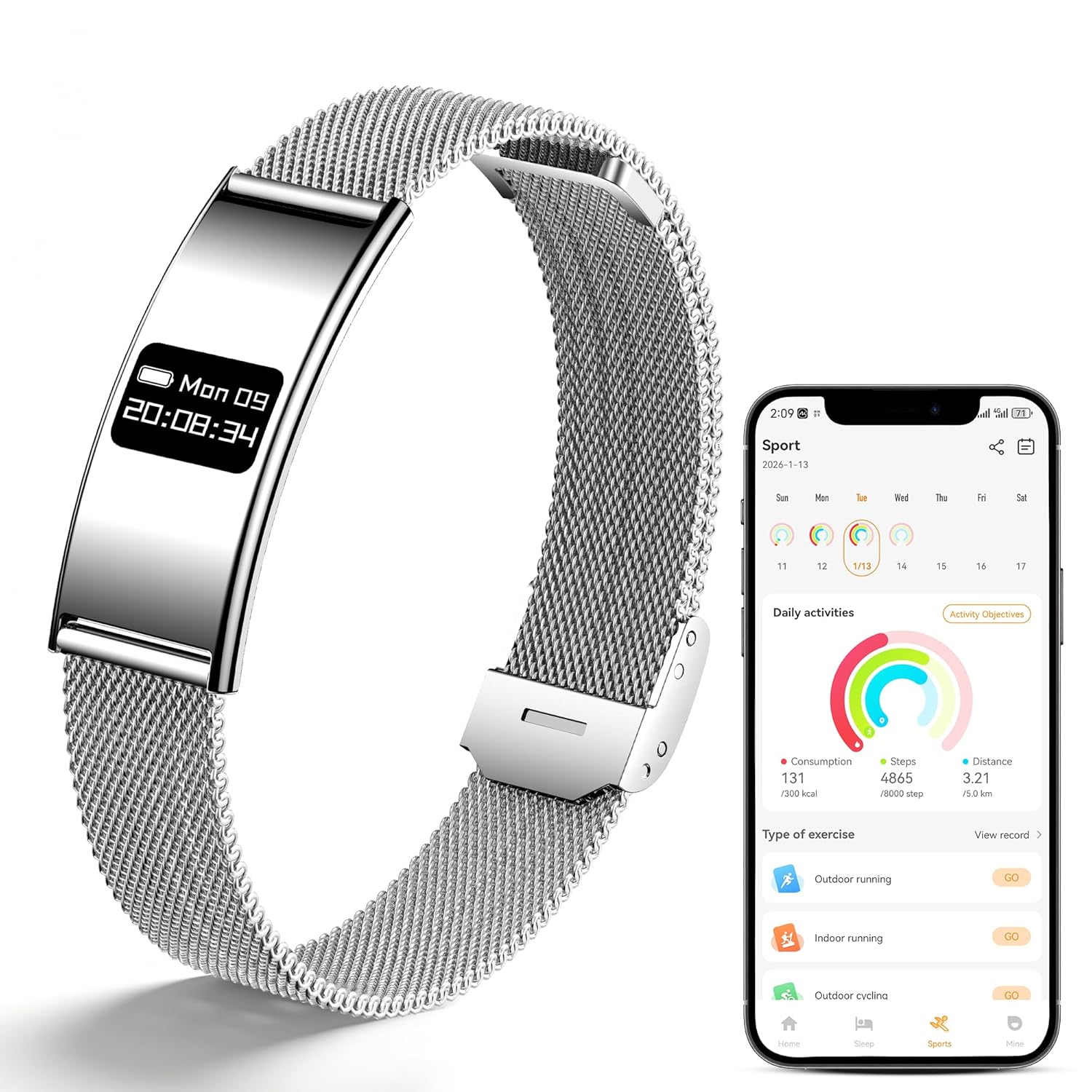 Designed for everyday wellness and active lifestyles, the Irondance Smart Bracelet Fitness Tracker helps you better understand your body and daily movement in a simple, comfortable way. It provides continuous 24/7 sleep tracking, heart rate monitoring, stress insights, and HRV data, allowing you to stay aware of your overall wellness trends throughout the day and night. With 12 built-in sport modes, this fitness tracker supports walking, running, cycling, and other common activities, accurately recording steps, calories burned, distance, and activity duration. Whether you are maintaining a fitness routine or simply staying active in daily life, it offers clear and easy-to-read data to help you stay motivated. Compatible with both Android and iPhone devices, the bracelet syncs seamlessly with a free companion app—no subscription or hidden fees required. The app presents your activity and wellness data in a clear, user-friendly format, making it easy to review progress and build healthier habits over time. Lightweight and comfortable for all-day wear, the Irondance smart bracelet features an elegant gold and black design and includes an extra band for convenient style changes. Suitable for men and women of all ages, it makes a practical choice for personal use or a thoughtful gift for birthdays, holidays, or anyone looking to stay active and informed in everyday life.