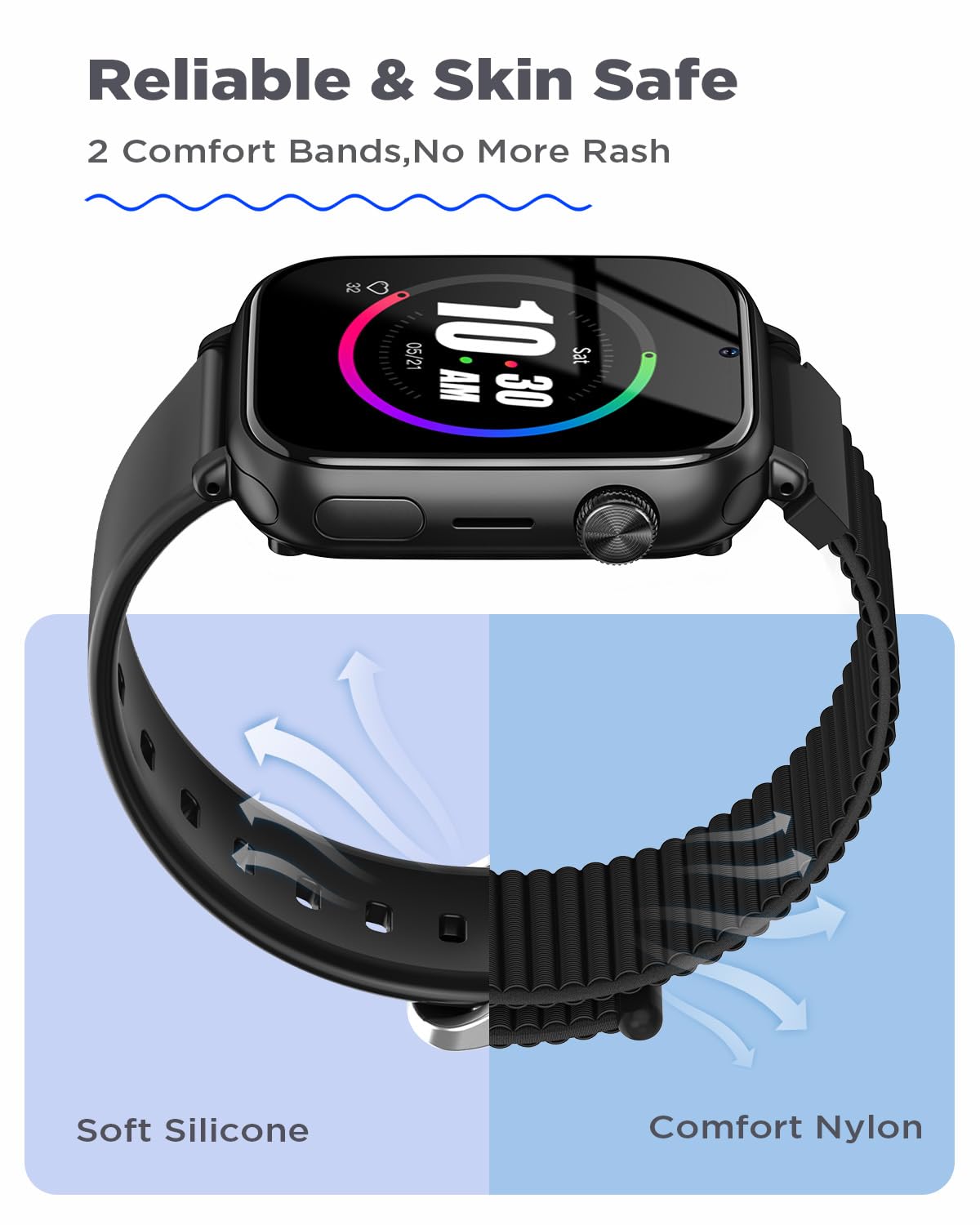 【Unbreakable Toughness Built for Kids】: The smart watch for kids features a sturdy ABS casing and comes with two protective films to safeguard against bumps and scratches during play. Its long-lasting design ensures durability, while the included silicone and nylon straps allow you to choose according to your child’s preference, preventing skin irritation and ensuring comfort