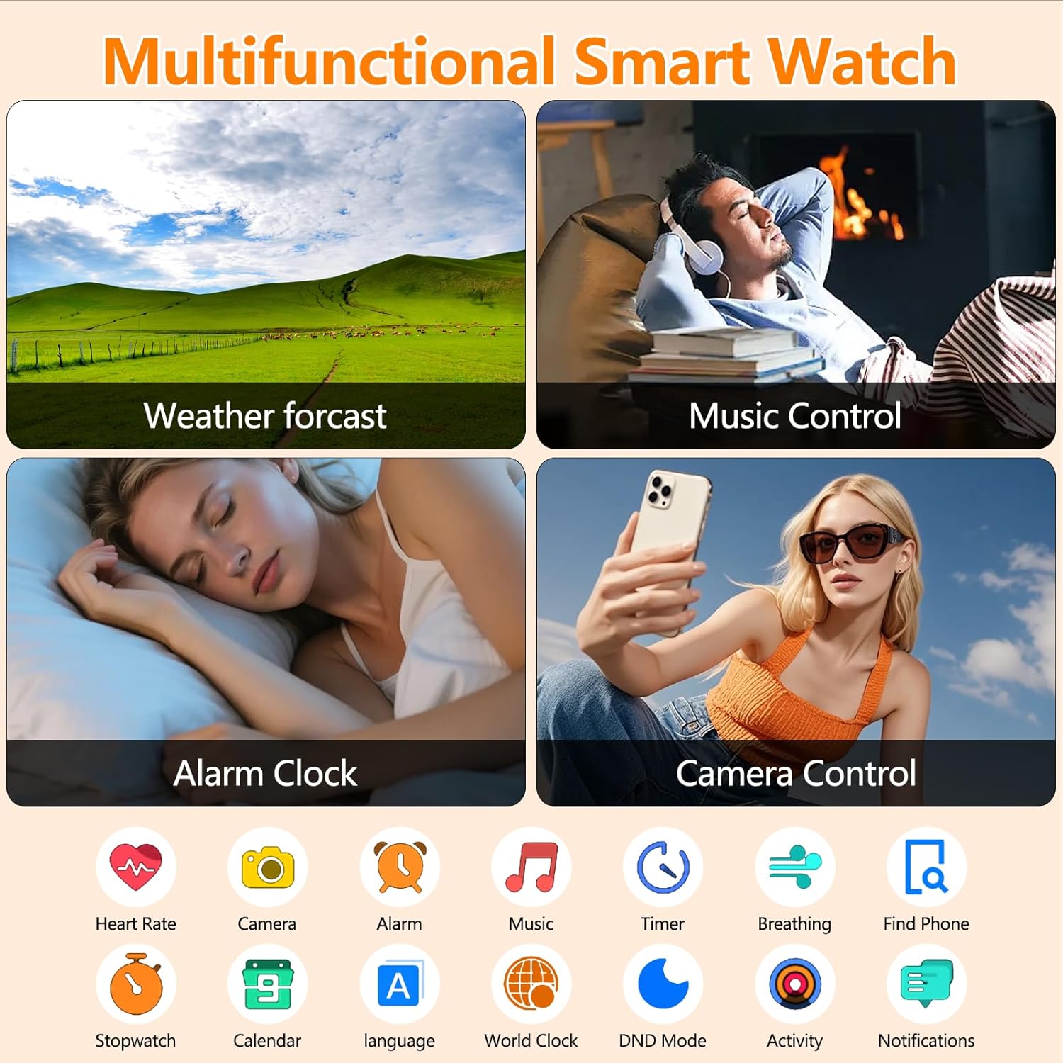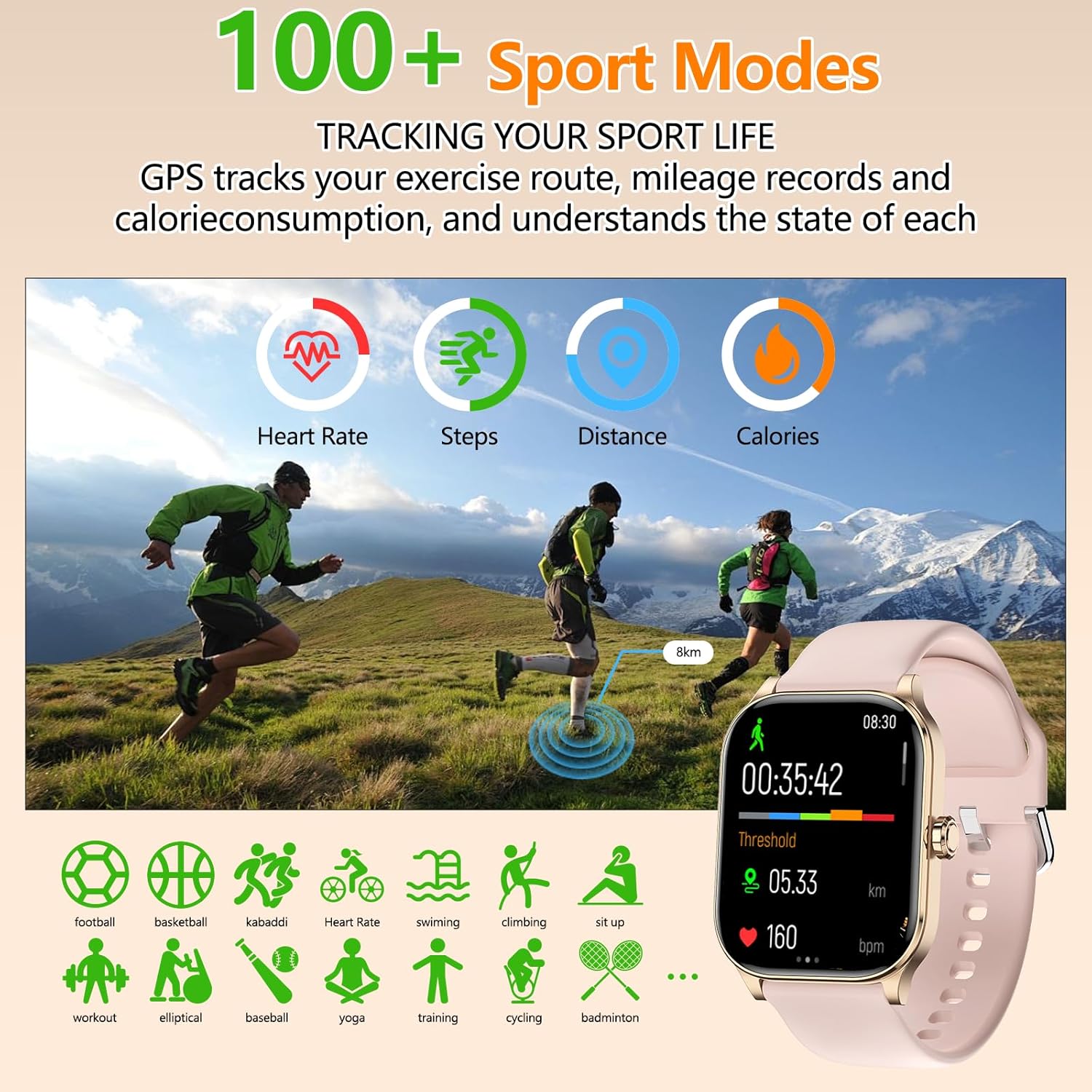 Hands-Free Bluetooth Calling & Real-Time Notifications: Make/receive calls directly from the watch (clear HD sound) and get instant alerts for texts, emails, social media (Facebook/Instagram/WhatsApp), and app reminders—no need to reach for your phone during workouts, commutes, or meetings.
