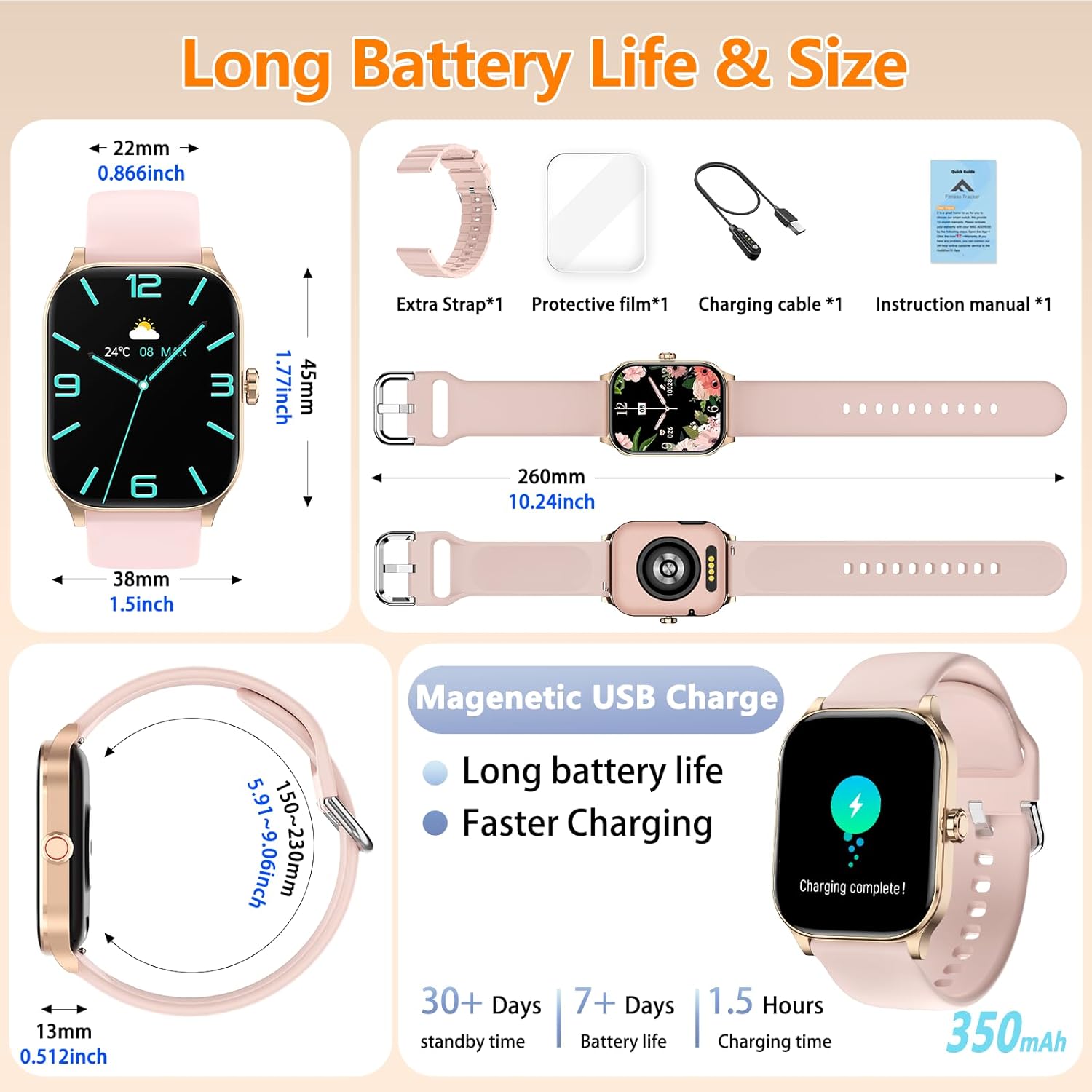 Style That Works for Every Occasion: With a sleek 1.96“ HD touchscreen (adjustable brightness) and a lightweight silicone strap (2 replaceable watchband), this watch looks great at the gym, in the office, or at a casual dinner. It’s comfortable for men and women alike. And our smart watches for women and men is the best gifts for Christmas, New Year, Birthdays, Wedding Anniversaries, Valentine’s Day, Father’s Day/Mother’s Day, and other holidays.