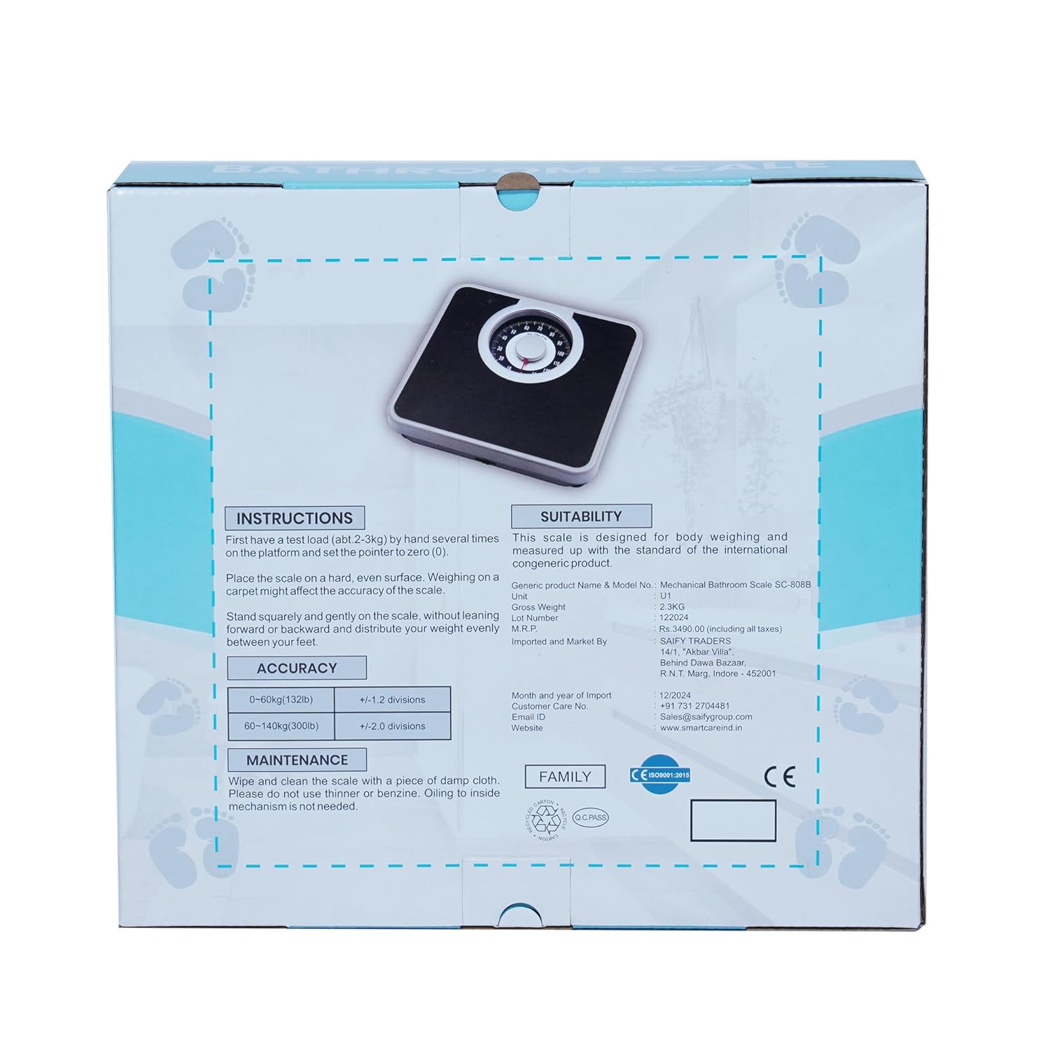 The SMARTCARE SC-808B Mechanical Bathroom Scale offers a reliable and traditional approach to weight measurement with its battery-free analog system. Built for precision and durability, this scale supports a maximum weight of 140kg (300lbs) with 1kg increments, making it an excellent choice for daily health tracking. Designed with dual accuracy calibration, it ensures ±1.2 divisions accuracy for weights between 6-60kg and ±2.0 divisions for weights between 60-140kg, delivering consistent and trustworthy results. The large, easy-to-read dial display ensures clear visibility, making it especially useful for seniors and individuals who prefer analog scales over digital alternatives. The non-slip, sturdy platform provides enhanced stability and safety, ensuring a secure weighing experience. Unlike digital models, this mechanical bathroom scale requires no batteries, making it a low-maintenance, long-lasting, and eco-friendly option for personal health tracking. Ideal for home use, gyms, clinics, and fitness centers, the SMARTCARE SC-808B offers simplicity, durability, and accuracy, making it a must-have mechanical weighing scale for everyday health monitoring.
