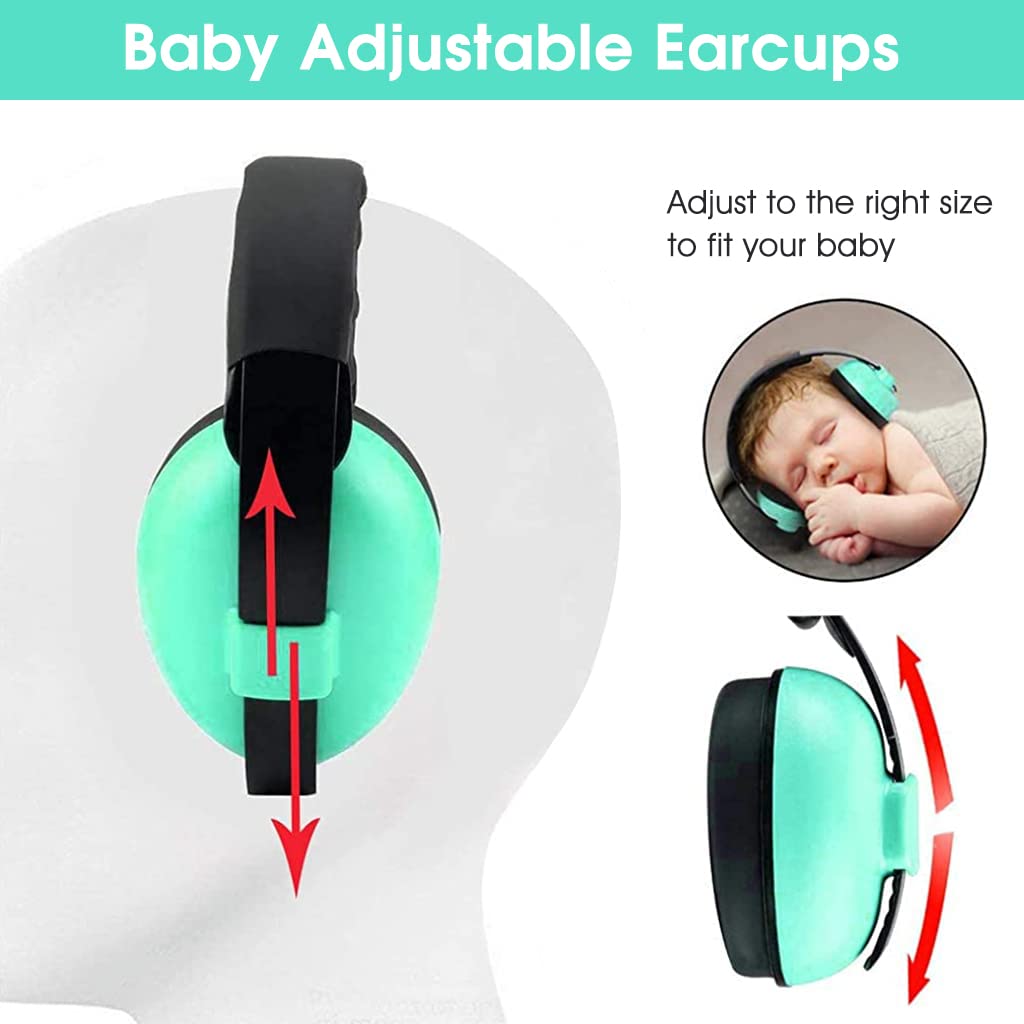 SNOWIE SOFT® Ear Muffs for Kids Baby Hearing Protection Earmuffs for Baby Sleep Flight Travel, Baby Ear Protection Noise Canceling Headphones for Baby Toddler Kids 0-3 Years (Green)