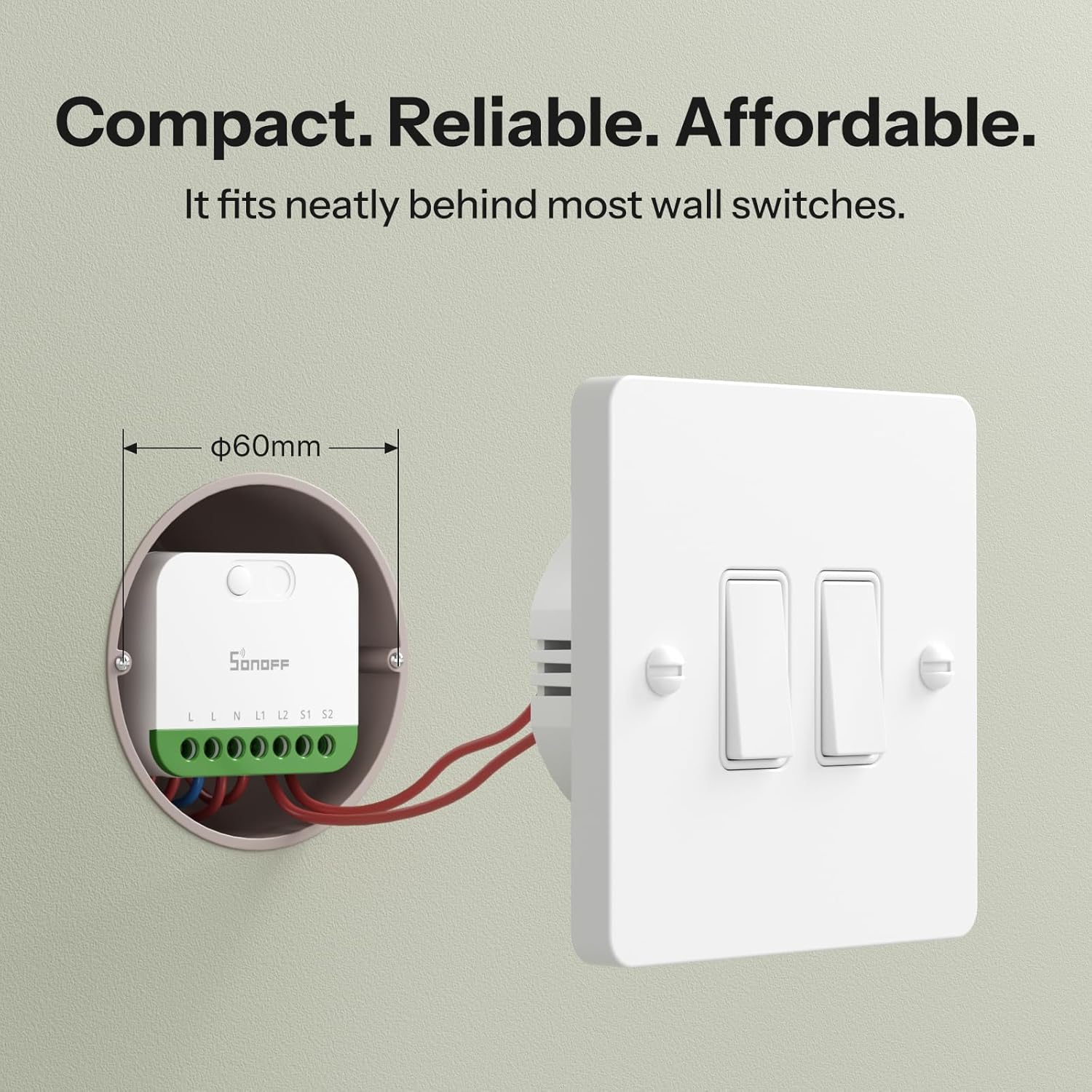 SONOFF MINI DUO(Matter Over WiFi) 2 – Channel WiFi Smart Switch, Matter – Enabled, 16A Total Load, Compact for Standard Boxes, Remote & Automated Control