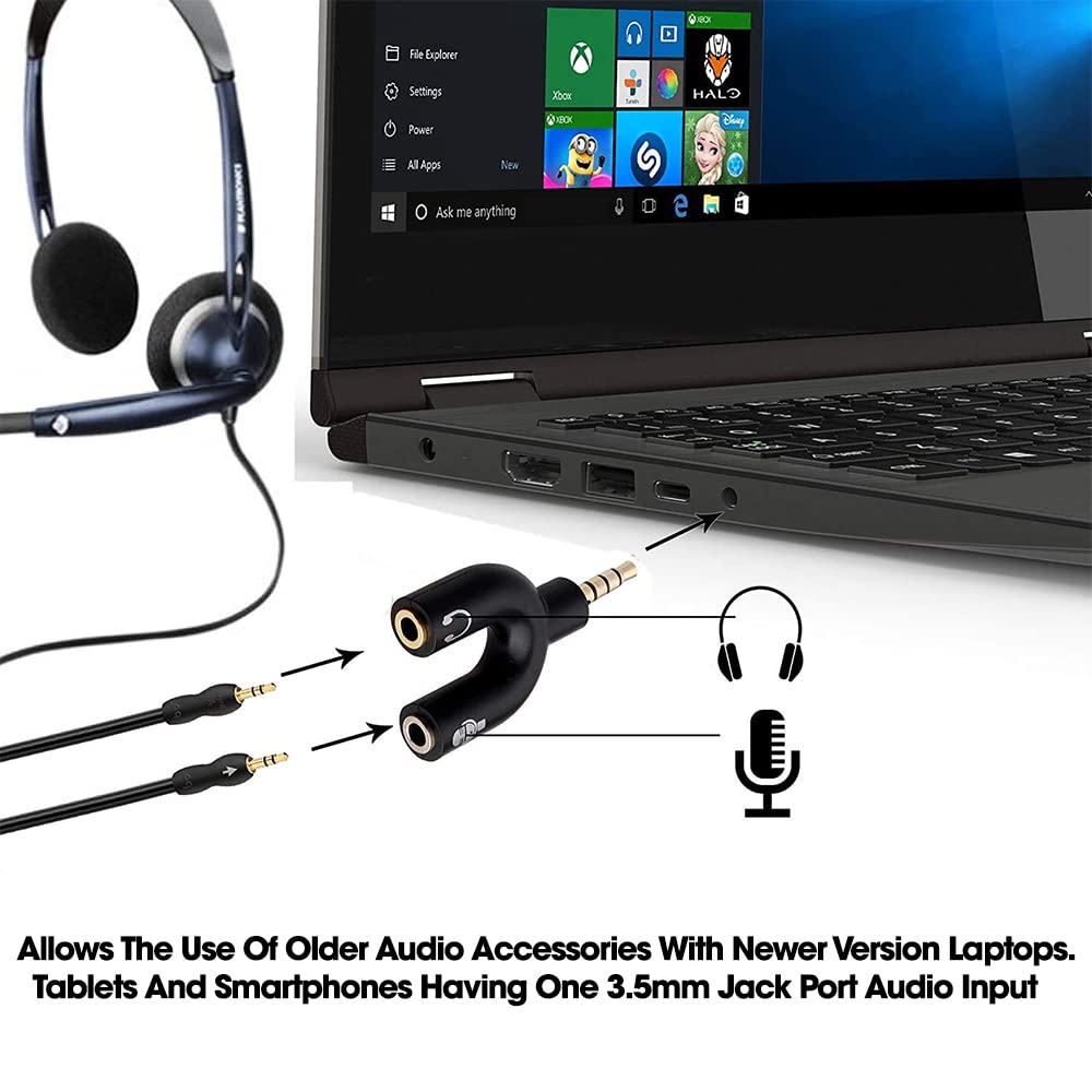 Sounce Audio Jack Headphones with mic, 3.5 mm Jack Splitter 2 Male 1 Female Black (U-Shape)