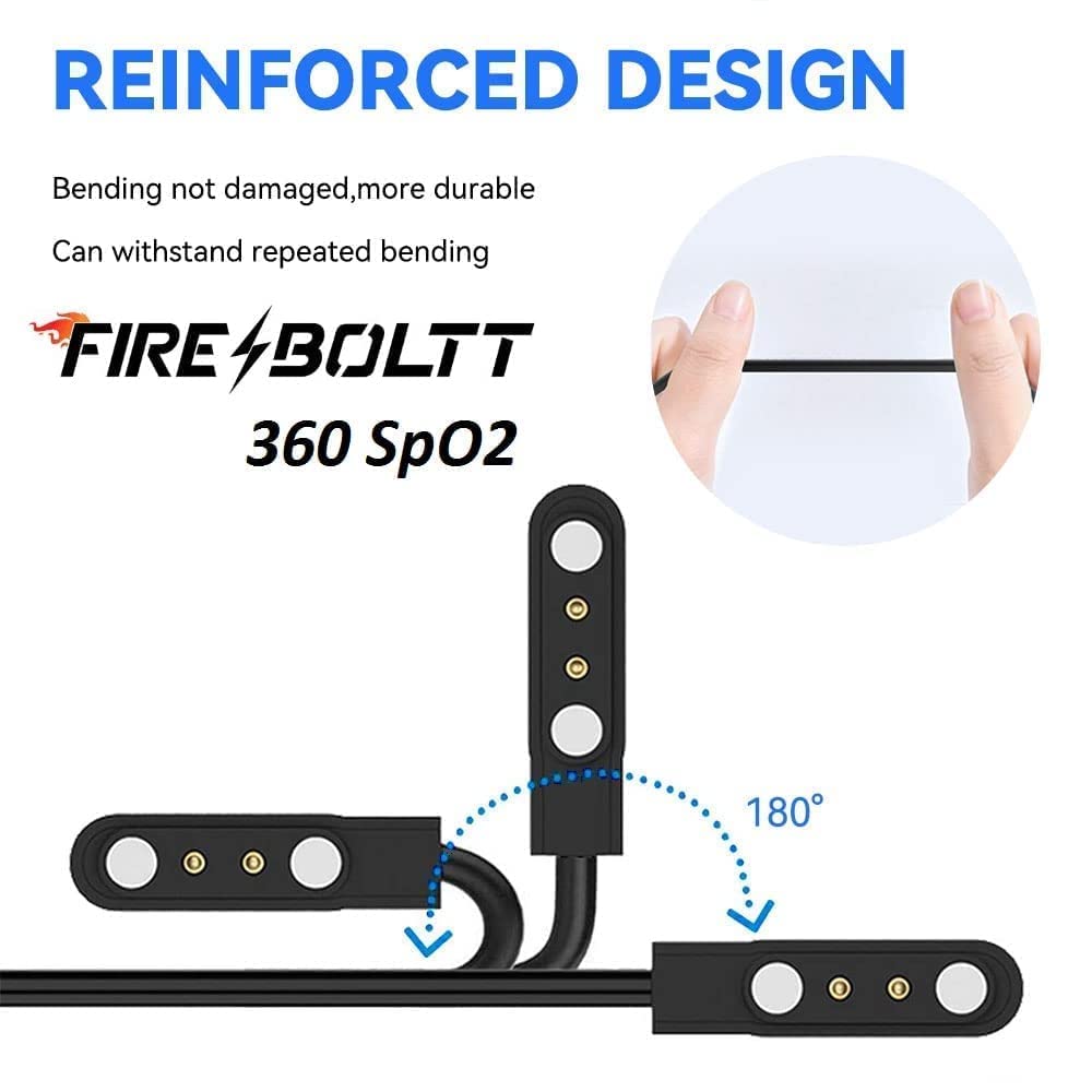 【Durable Construction】: Crafted with high-quality materials, including copper connecting pins, this charging cable ensures durability and long-lasting performance. The copper pins provide reliable connectivity and efficient charging for your Firebolt smartwatches.