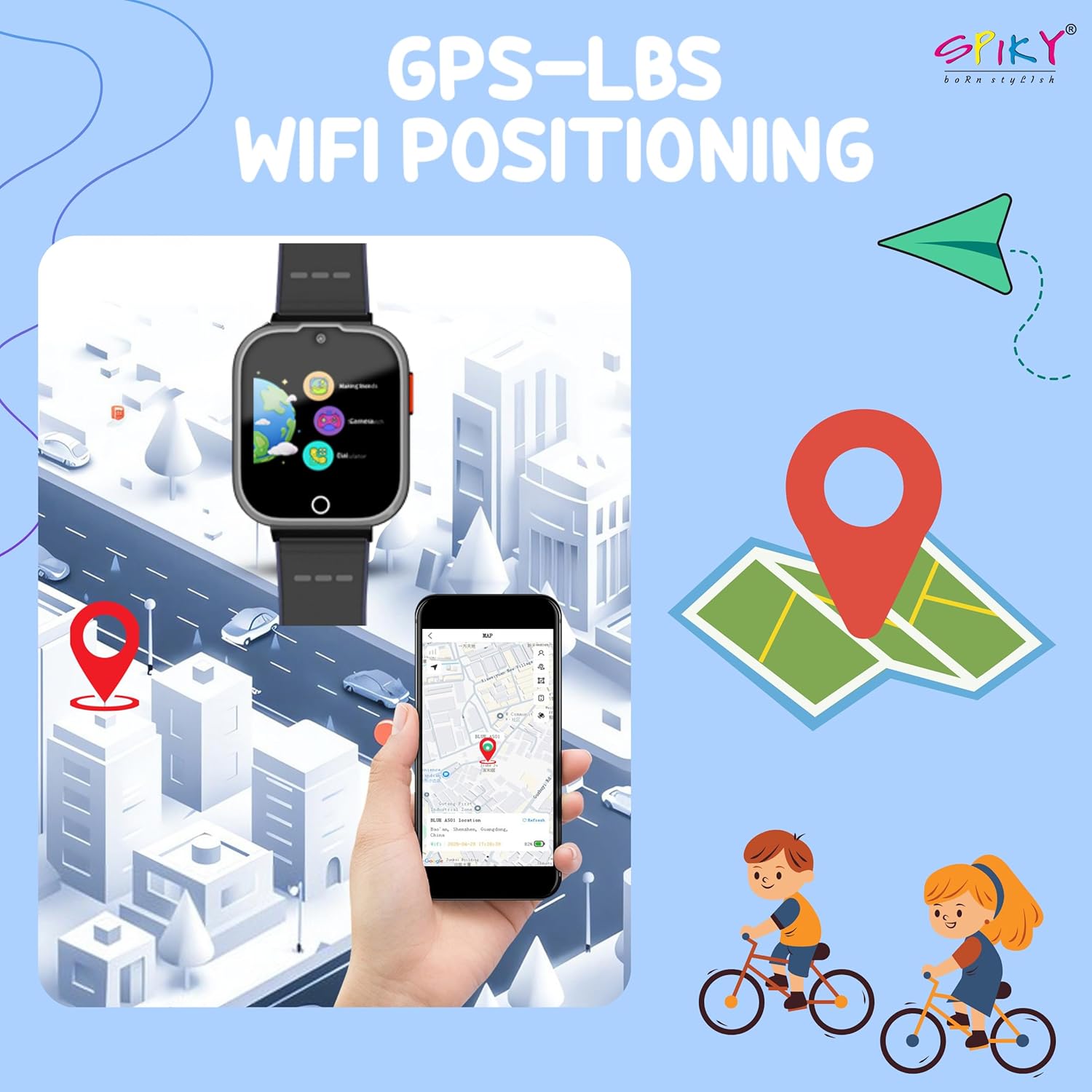 Stay Connected with Your Kids: Spiky Cyclops smartwatch for kids, keeps you connected with 4G calling, GPS, and LBS tracking. Make instant video and voice calls, ensuring clear communication with your child aged 3-14 yrs.