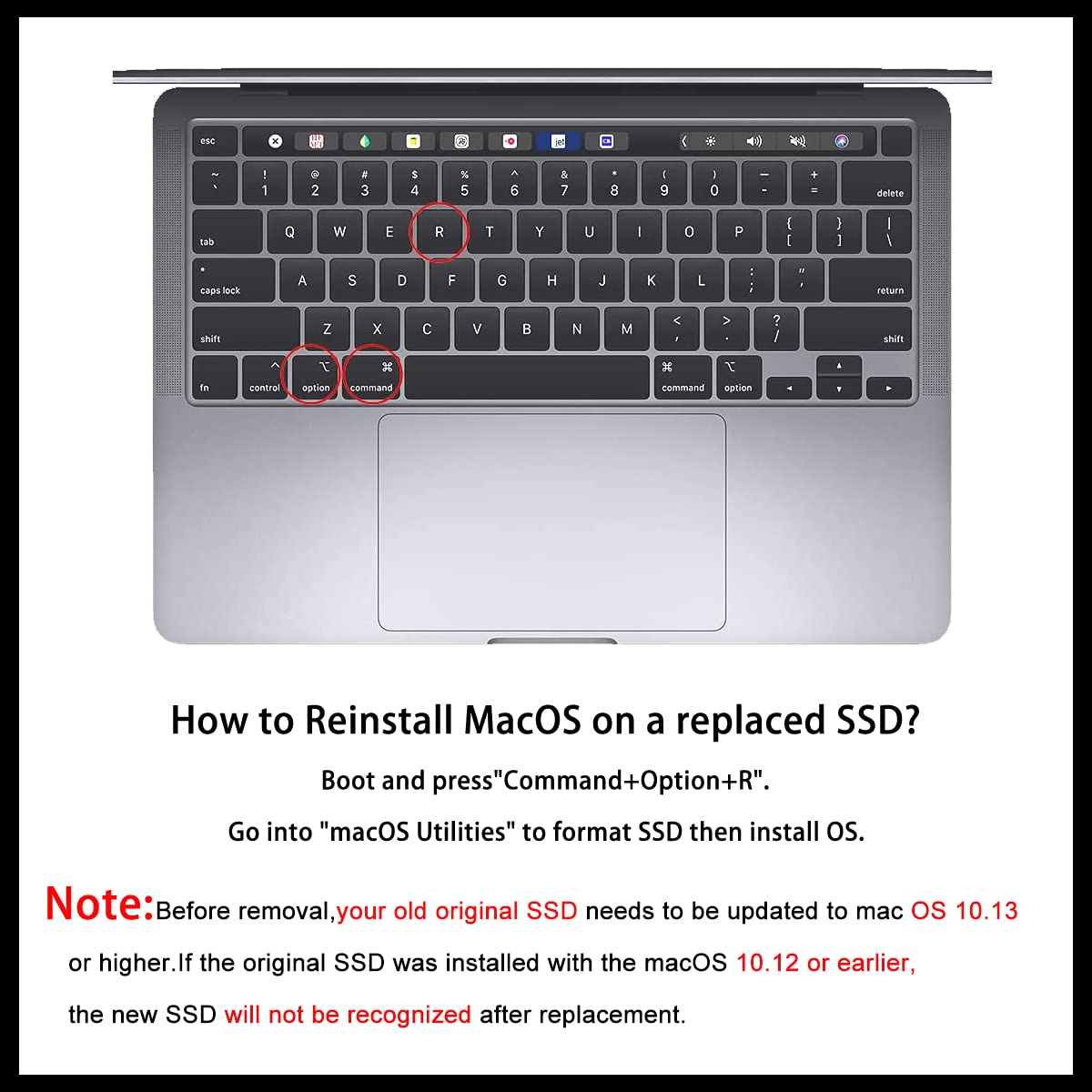 [Reinstall MacOS] 3 ways to install macOS: From Time Machine Backup; Make USB Installer;From Internet Recovery. You can check some video on Amazon, or check our installation manual in listing documents, or there are simple steps in the product description below. Remember to Reformat(Erase) the new SSD before Restore the MacOS.