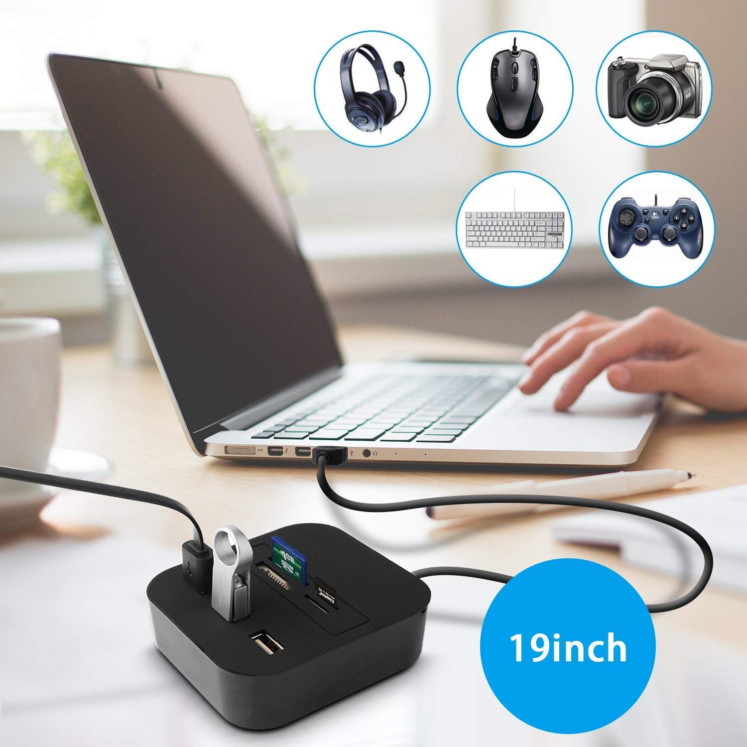 3 USB Hub With High speed USB 2.0 Connectivity Supports: T-Flash card, MS, MS Pro, MS Duo, MS Pro Duo, Mini SD, SD, RS, MMC, Micro MS- M2 SDHC (UHS-1), SDXC (UHS-1), MicroSDHC, M2, MS (MSXC), CF High transfer rate of up to 480 Mbps Compact design for mobile user Plug and play for PC platform Compatible OS: Windows ME/2000/XP/Vista/WIN7 and MAC OS X.
