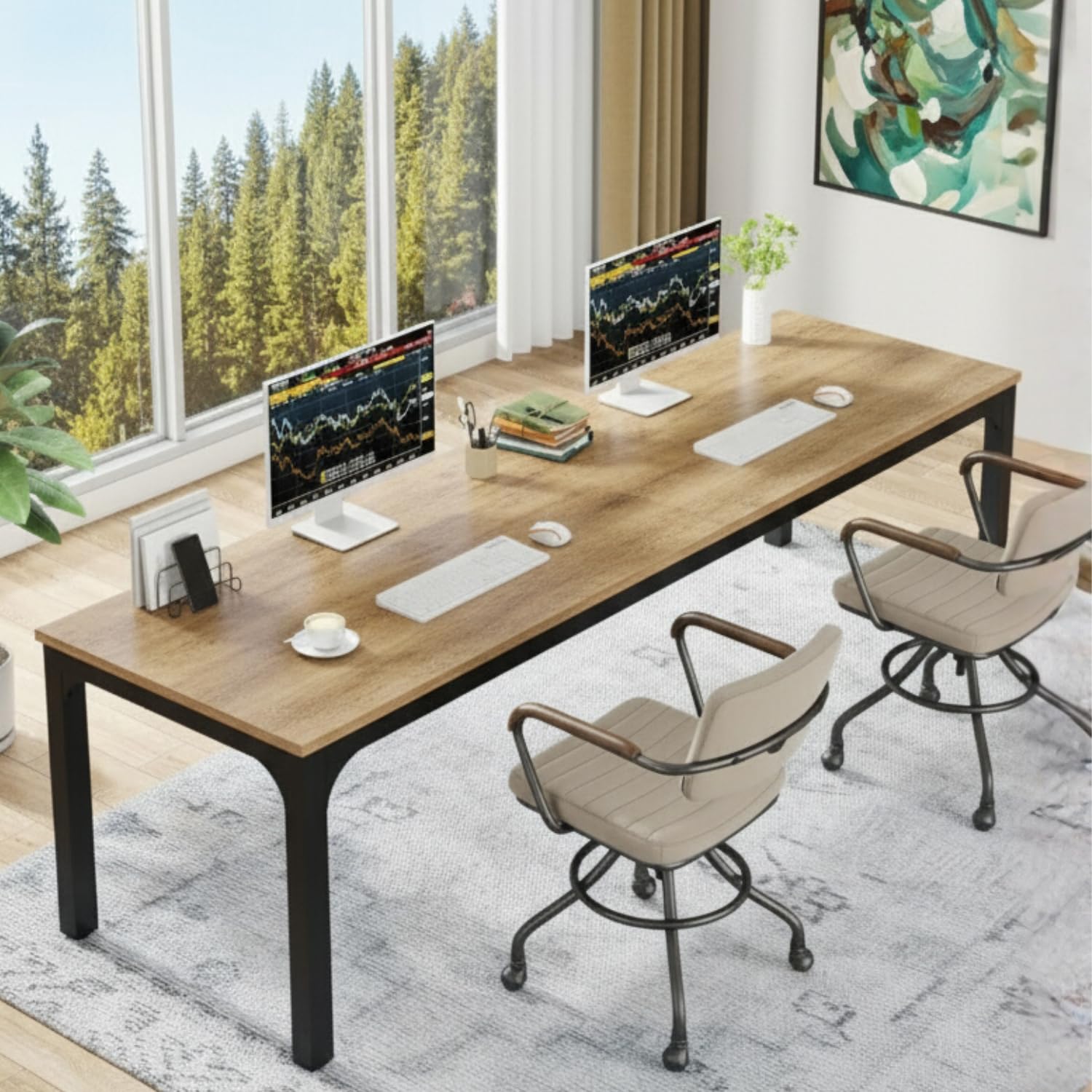 TEKAVO Simplon Large Computer Table | Meeting Table | Conference Table | Two Person Desk | Large Office Table | Long Work Desk | 150 CM Long x 70 CM Wide | Brown Wood | Metal | DIY