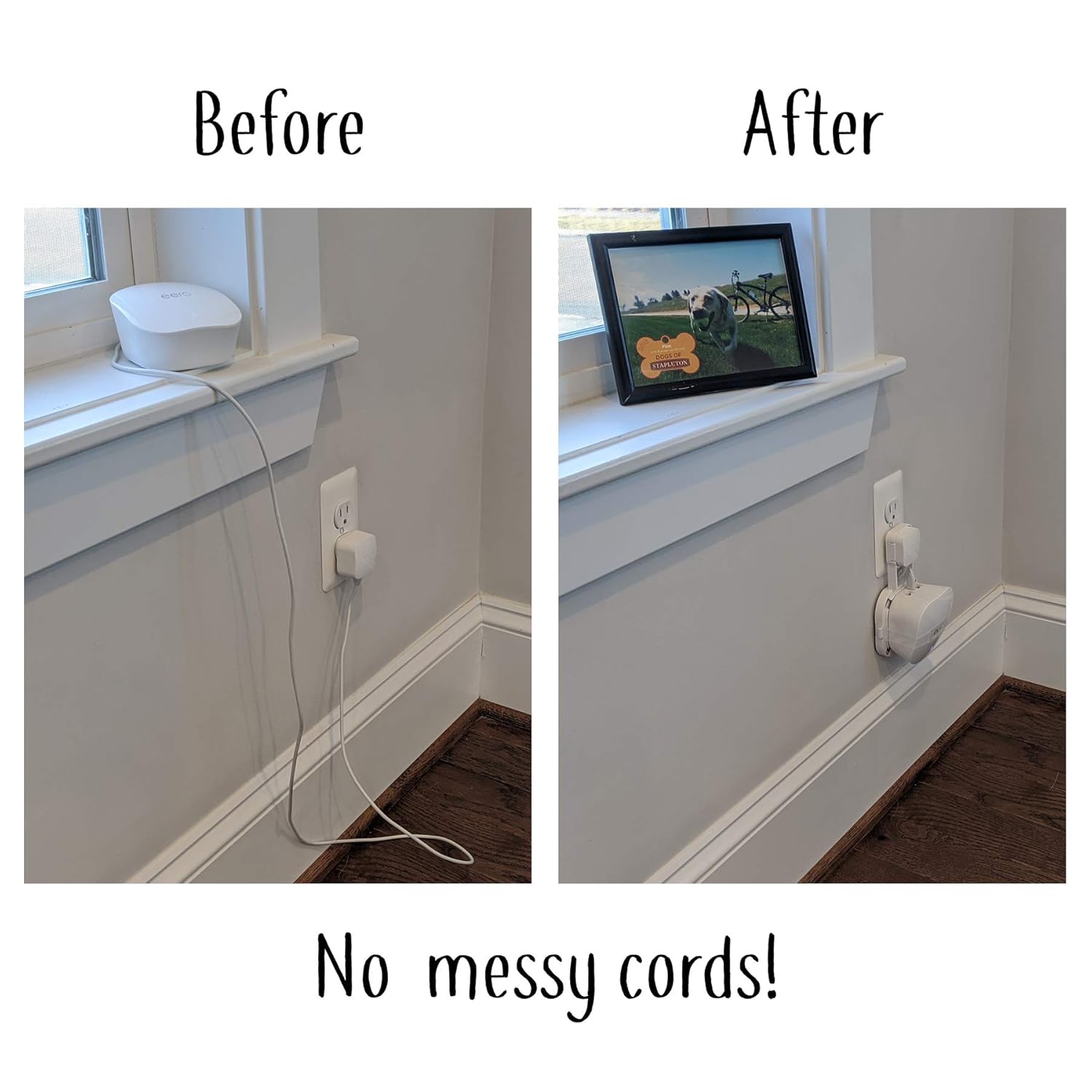 Our mount uses the cord that comes with your Eero and wraps it neatly around our patented “Cord Groove Organizer”
