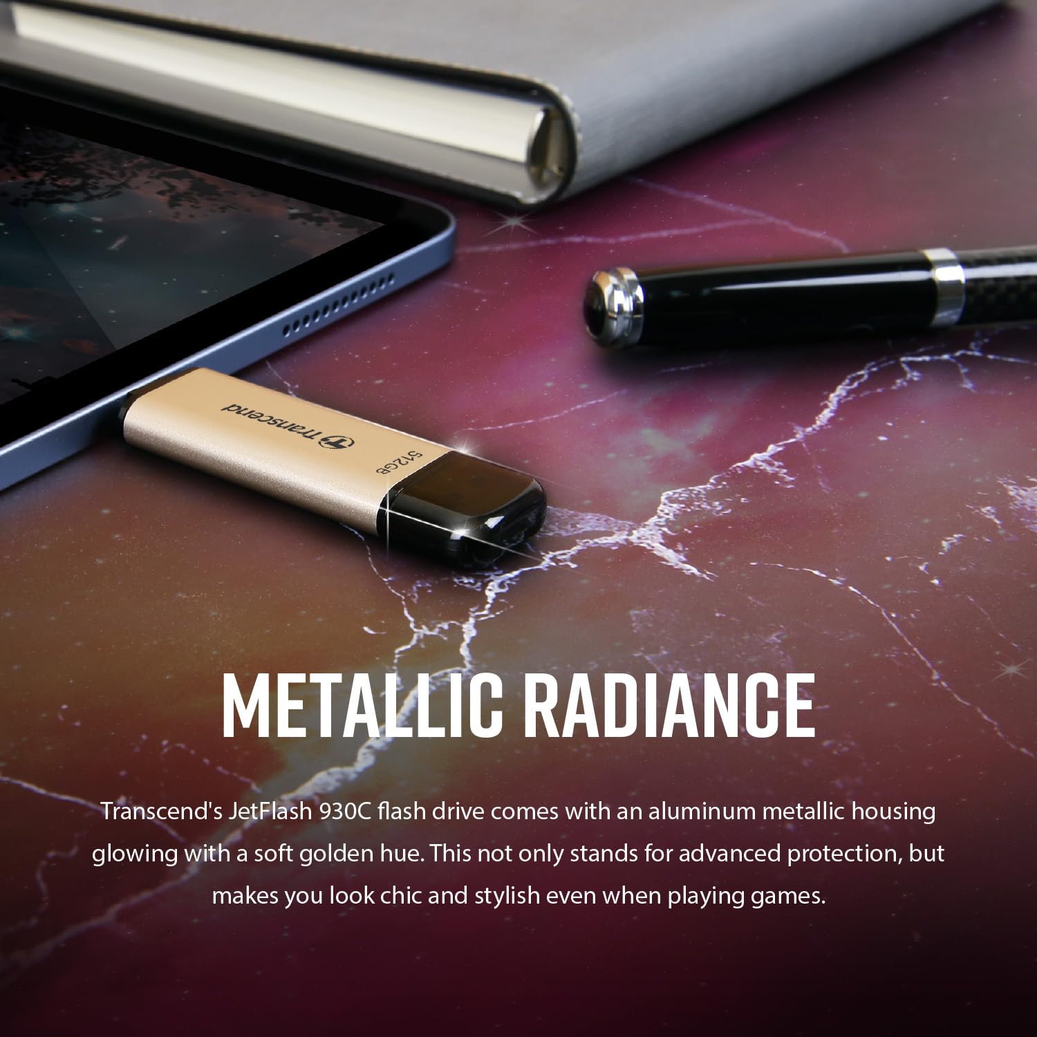 Transcend JetFlash 930C 256GB USB Type C 3.2 Gen 1 (USB 5Gbps) Flash Drive, High Performance & High Endurance Pen Drive, Read/Write – up to 420 MB/s & 400 MB/s, 5 Yrs. Warranty, Gold (TS256GJF930C)