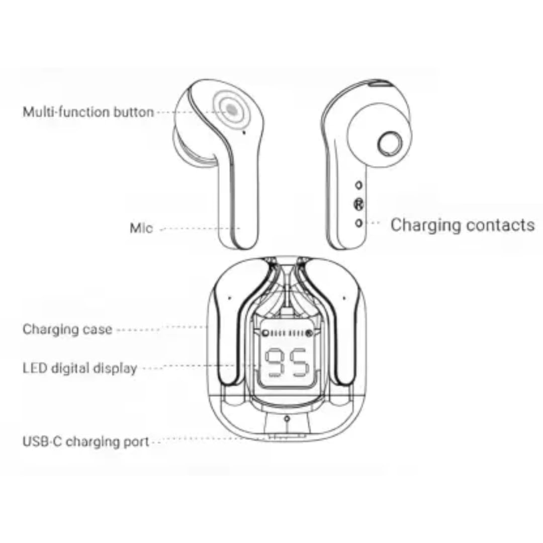 Transparent Earbuds with Smart Touch Control, LED Digital Display ENC Buds Bluetooth Headset (Black)