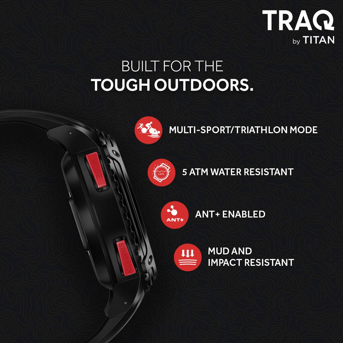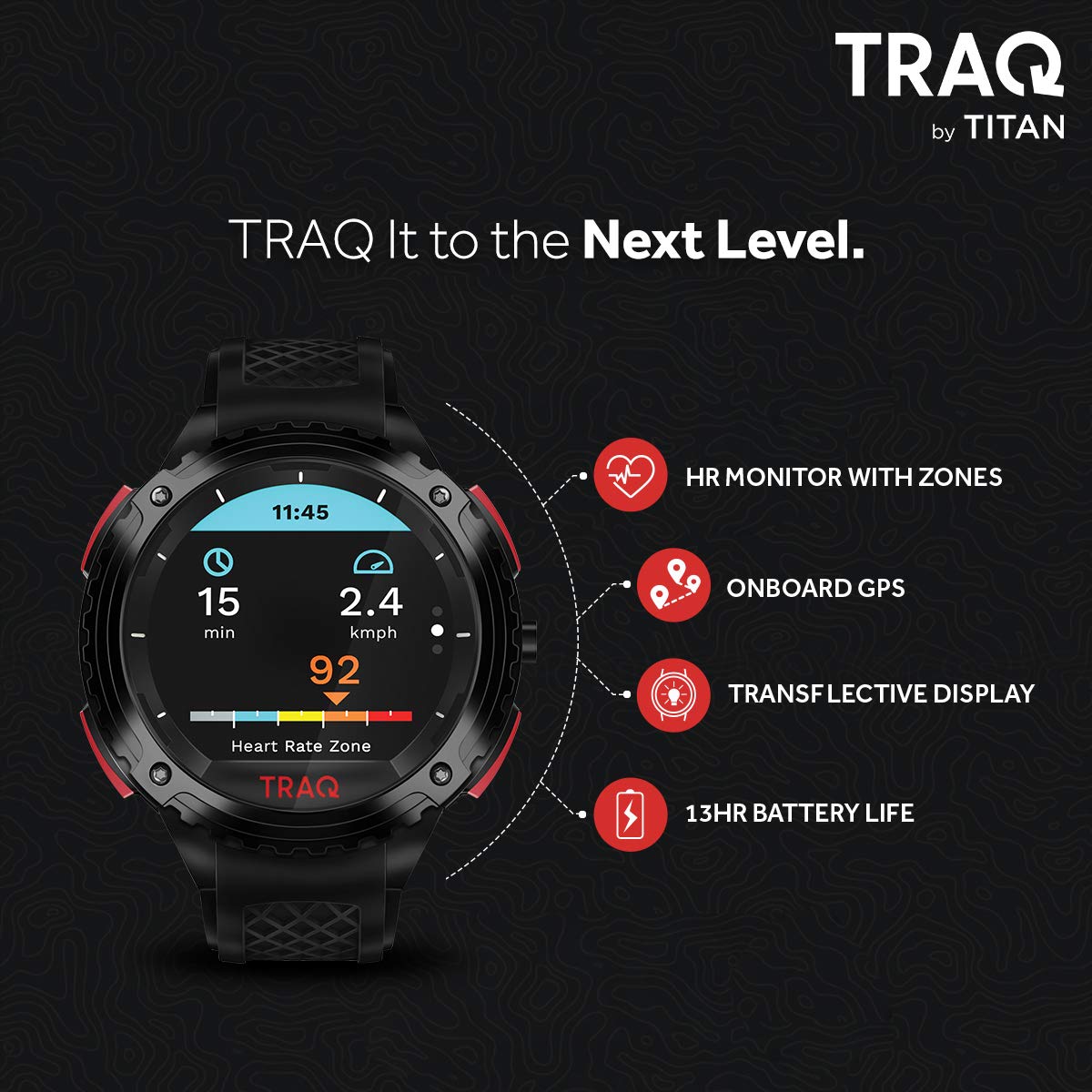Traq by Titan Triathlon Running, Cycling, and Swimming GPS Unisex Smartwatch with Heart Rate Monitoring and Upto 7 Days of Battery Life 75004PP01