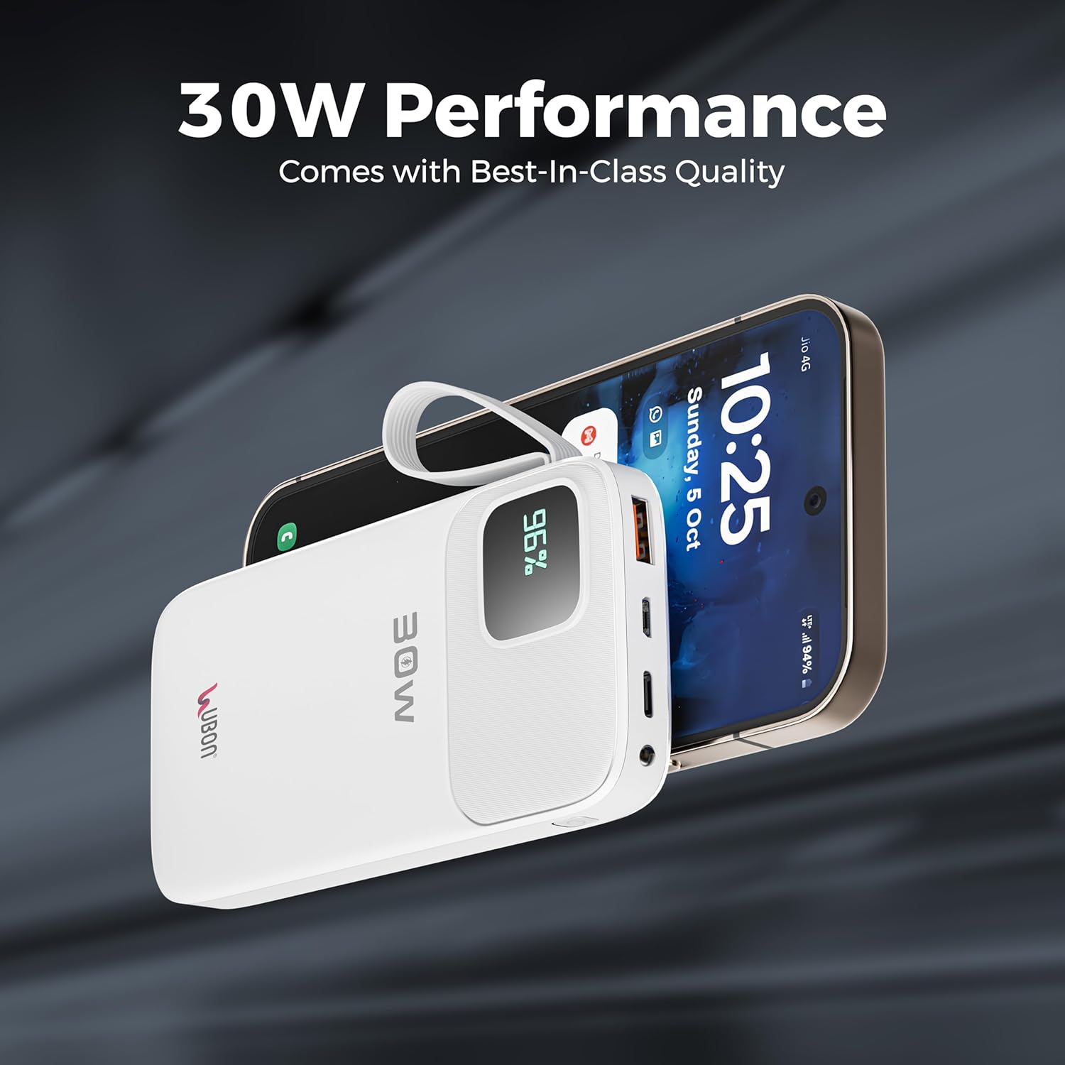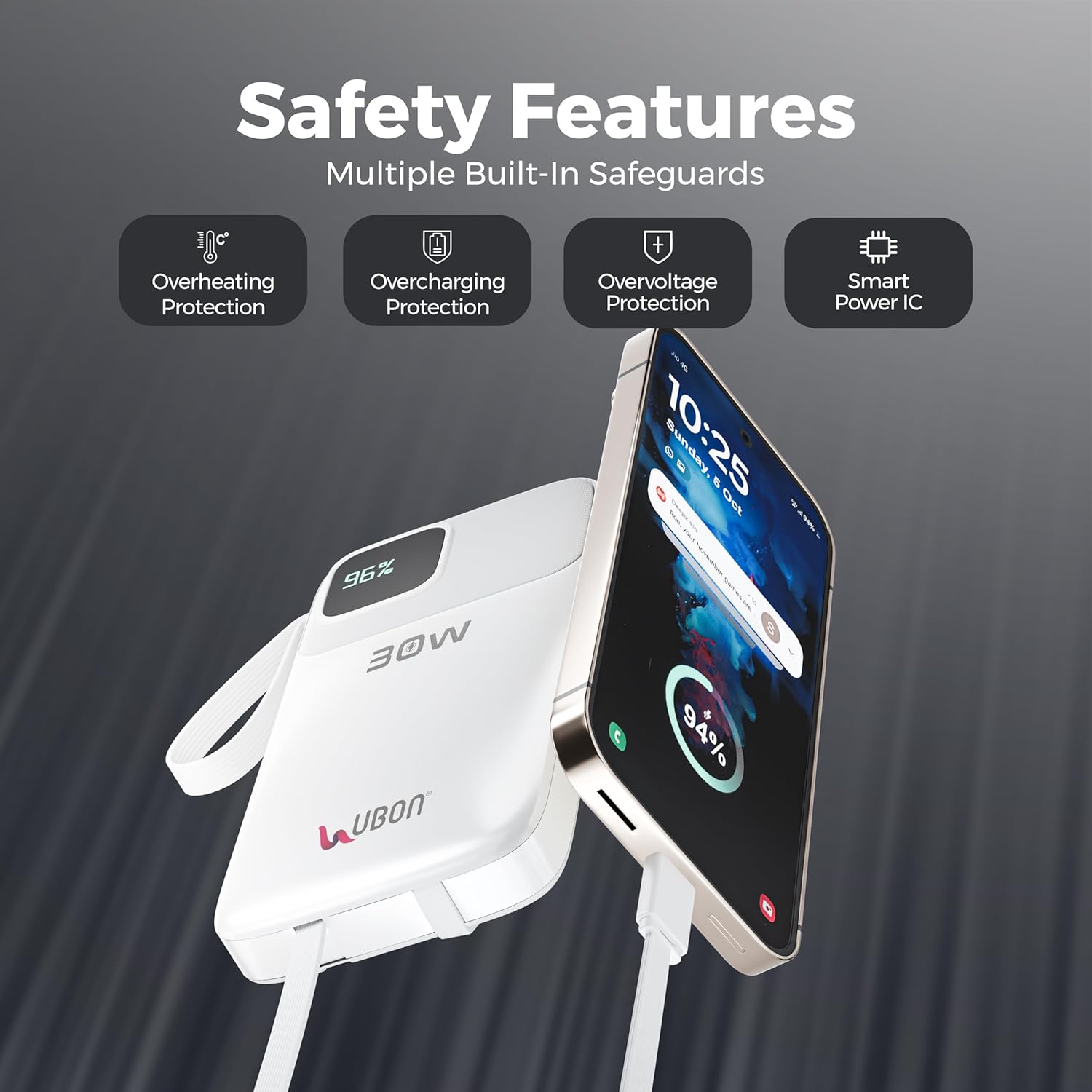 Ubon 10000mAh Powerbank (PB-X120) | 30W QC PD Fast Charging | Smart IC Protection | Compact & Durable Portable Charger for Smartphones, Tablets & Gadgets (White)