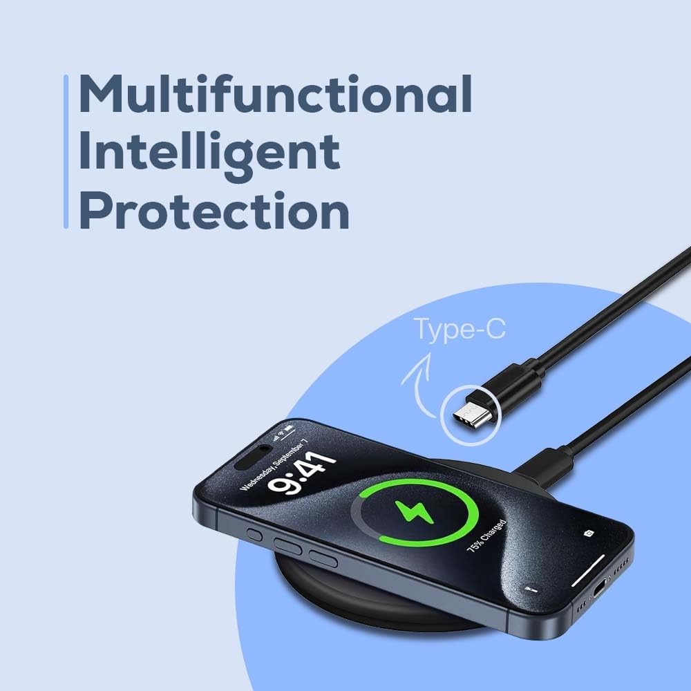 UNIPAD 200 Wireless Charger 15W Max Fast Charging Pad [with Type-C Cable] Compatible with iPhone 17/16/16 Plus/16 Pro Max /15/14/13/SE/12 Series, Samsung Galaxy S24/S23/S22 Series-Black