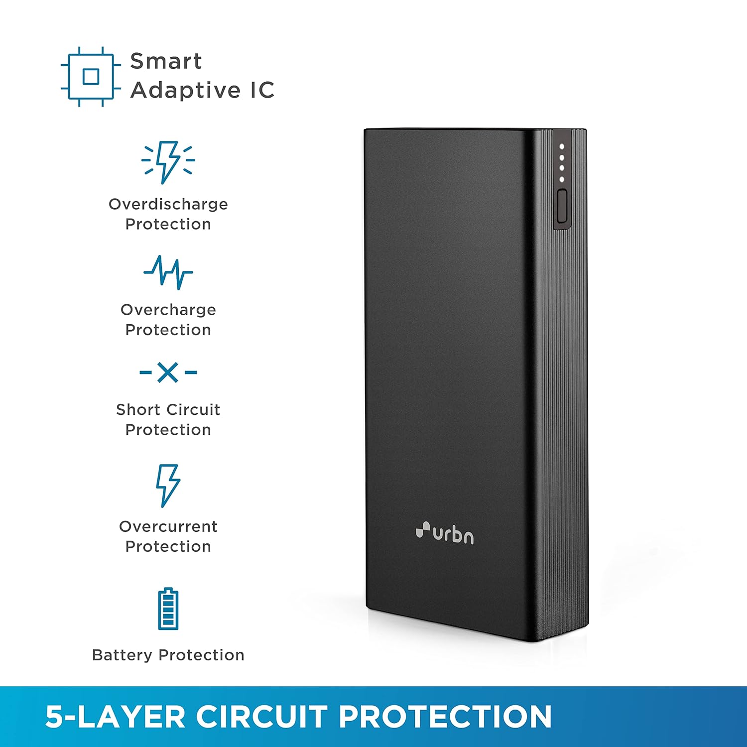 URBN 20000 mAh 12W Fast Charging Metal Power Bank | Dual USB Output | Micro & Type C Input | Safe Charging | Type C Cable Included -Black