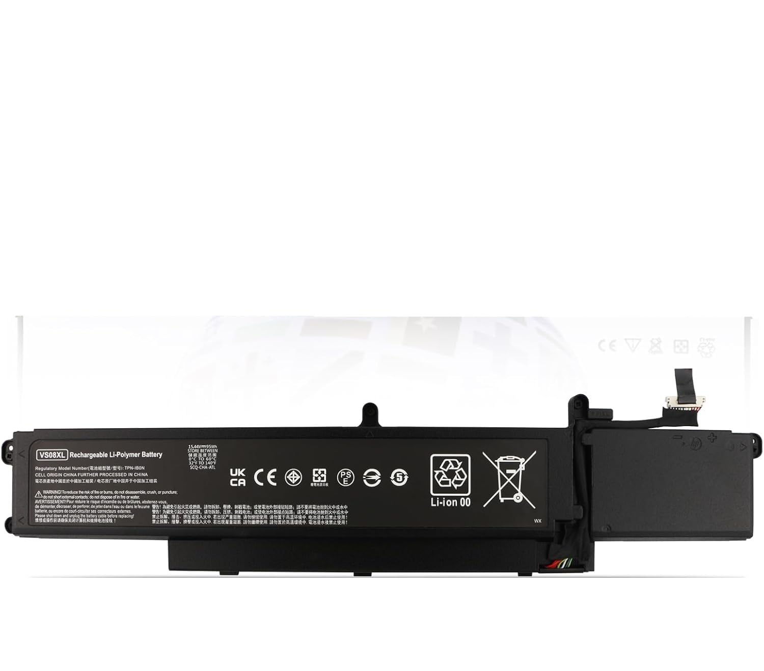 【Battery Specifications】Model Name: VS08XL Battery, Battery Type:Lithium_ion Voltage: 15.44V; Capacity: 95Wh 5907mAh; Cells: 4-Cell; Color: Black.