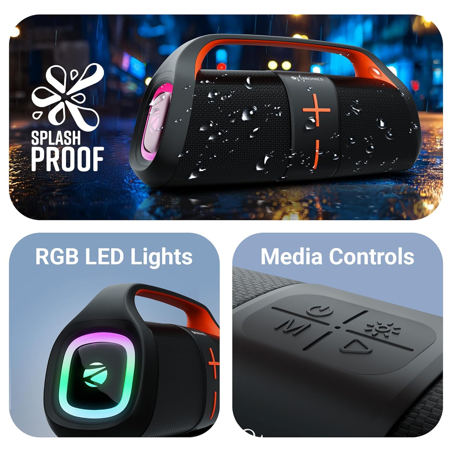 Dynamic Power: Enjoy powerful 30W sound with the ZEB-Sound Feast 200 portable BT speaker that is perfect for vibing with friends.
