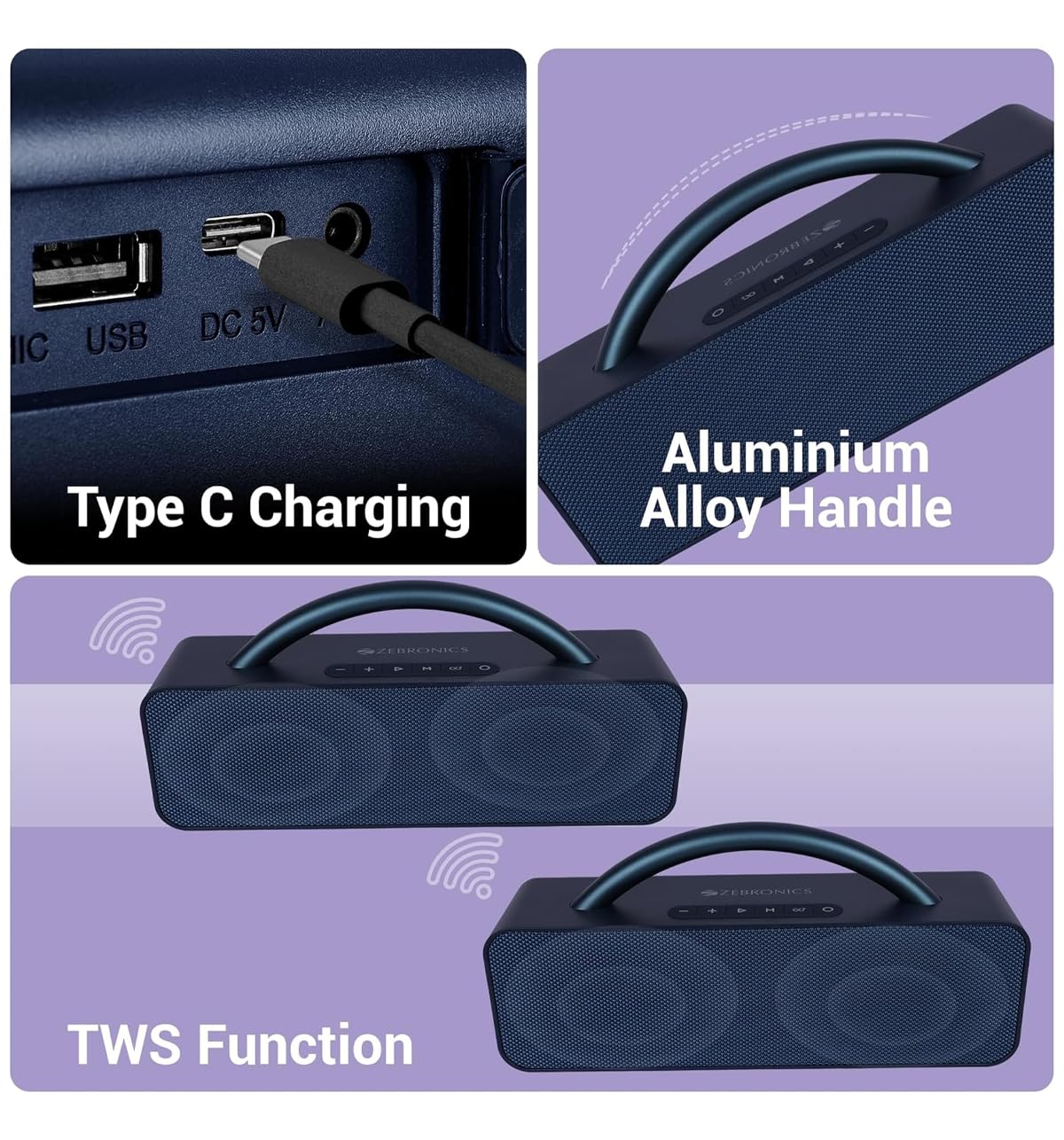ZEBRONICS Newly Launched Rocket 200 Portable Wireless Speaker with 20W Bluetooth 5.1, FM, USB, AUX, Deep Bass,Media & TWS, Microphone Input, Karaoke,Dual 5.08cm Drives,Call Function(Blue)